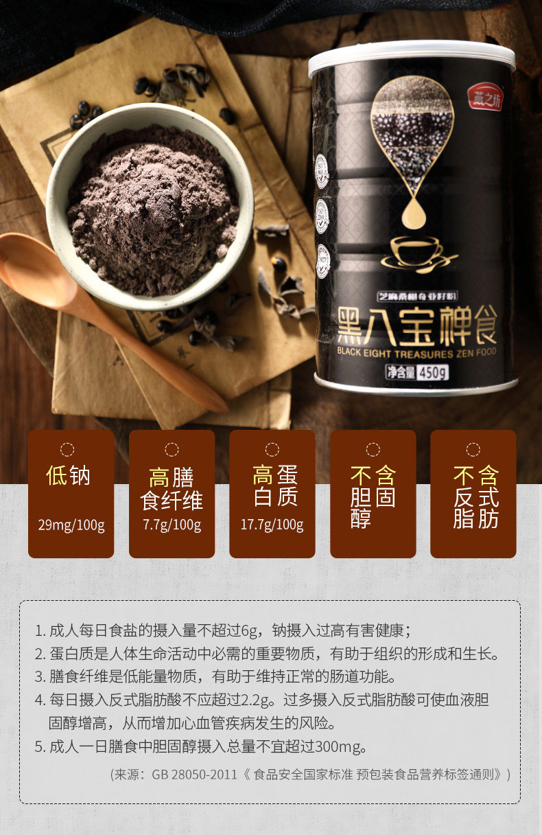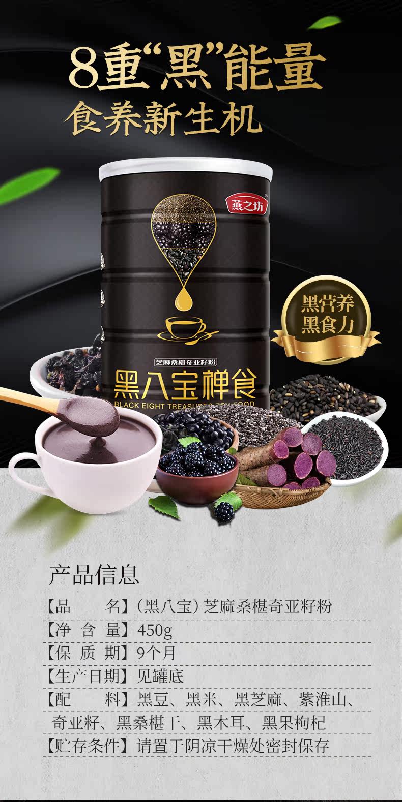 燕之坊 Черные восемь сокровищ черно -кунжут -толканка черная черная волчья черная порошка черная фасоль сразу же выпейте пищевой питание для питания 450 г
