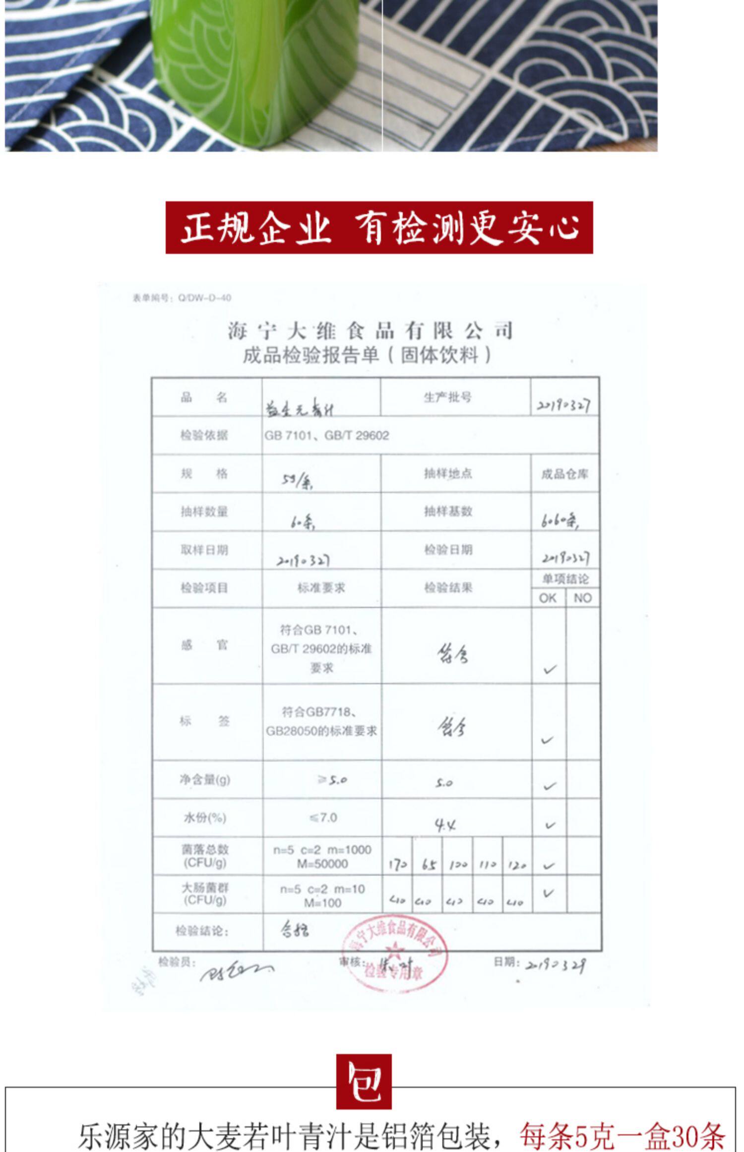Подлинный листовой ячменный лист зеленого сока порошок 5G*40 галька.