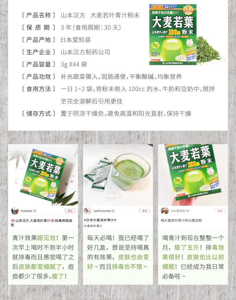 山本汉方 Японский японский лист листьев листьев японского зеленого сока и овощные растительные волокно