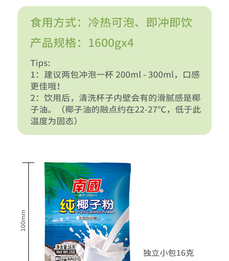 南国 Чистая кокосовая мука Коммерческая аутентичная специальность Hainan без добавления сахара Мгновенное кокосовое молоко кокосовое молоко кокосовое молоко