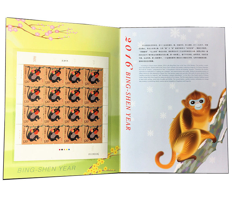 2016 Monkey Stamp Big Edition "Shen Monkey Abuspicious" Большая версия четырех раундов знаков зодиака Хуан Юнгую