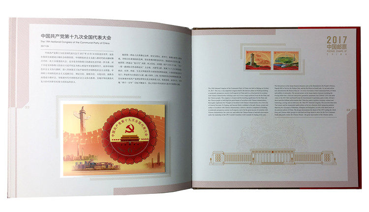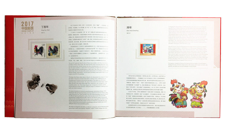 Годовой альбом марки 2017 года, Альбом Philatelic Corporation Image Album, полный набор марок в год Pooster, Color Version, китайское и английское сравнение