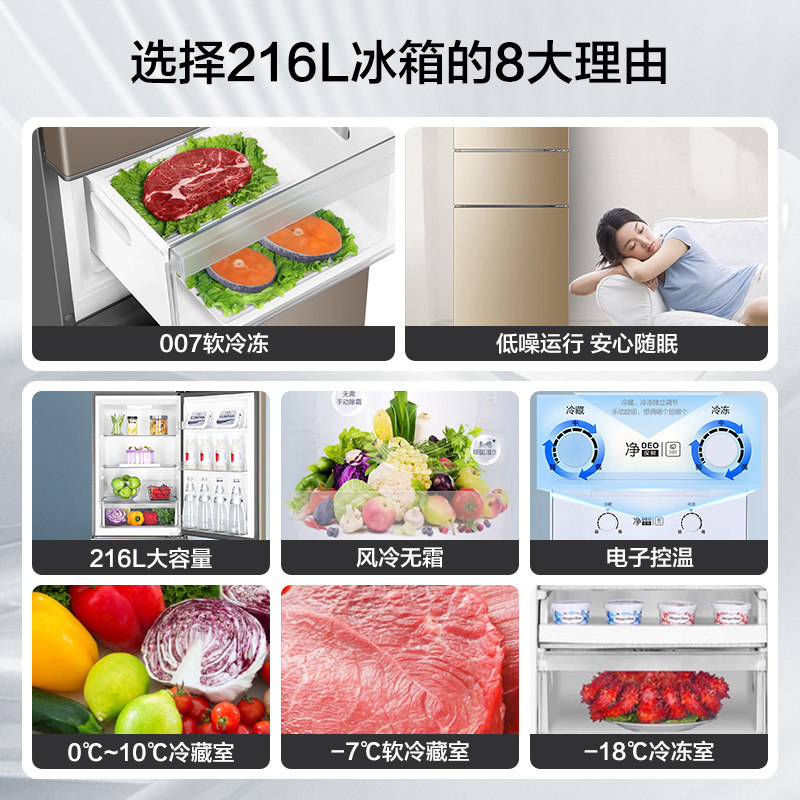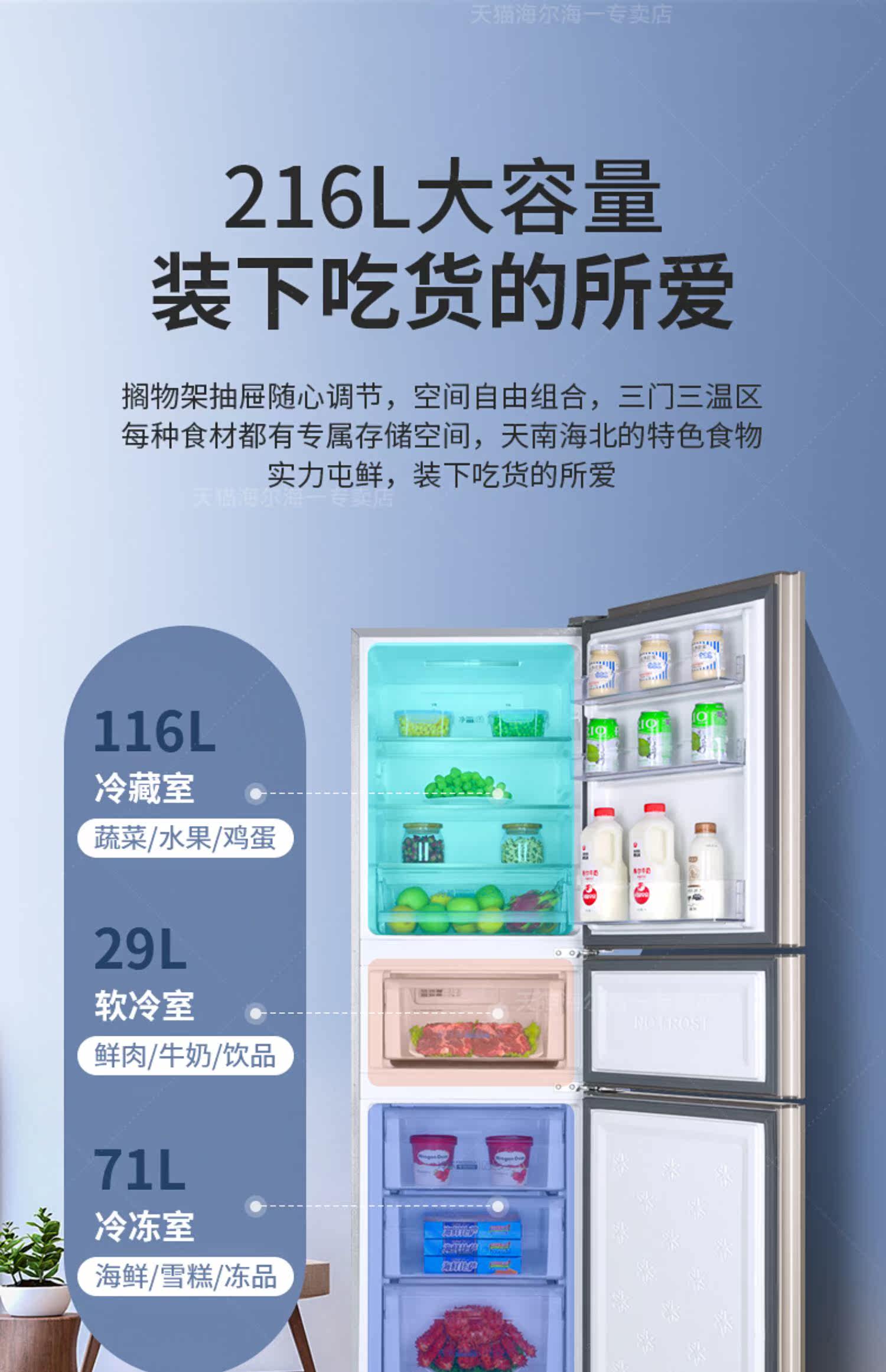 [Ветер и холод без заморозки] Haier Electric Holrigrator 216L Lift Sankao Home Маленькая энергия -двойная аренда Дом должностные лица