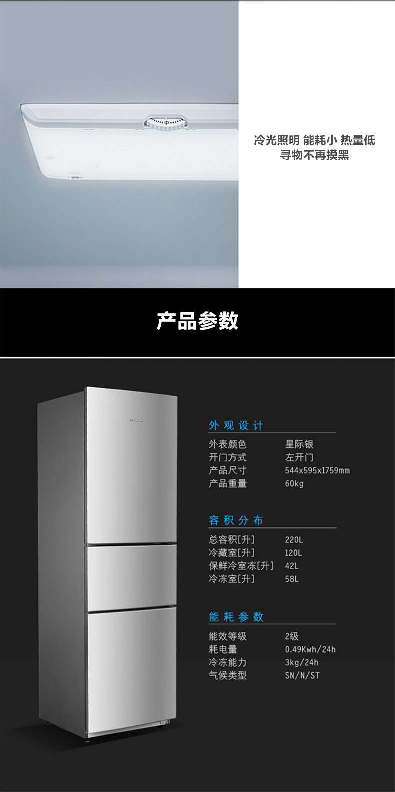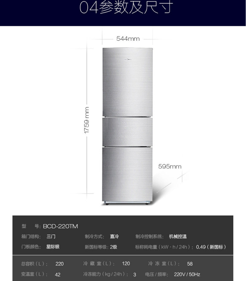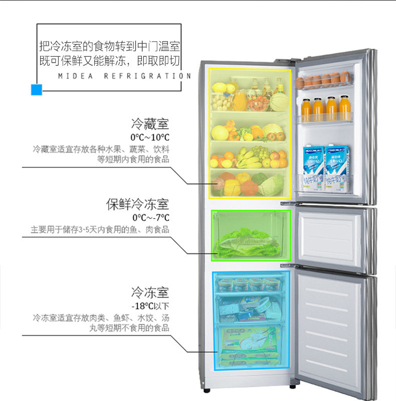 Мидю-холодильник Домохозяйство большая мощность Три открытая дверь, энергосберегая, замораживание охлажденного ветра, холодный, без холода BCD-217WTMA Lift L L