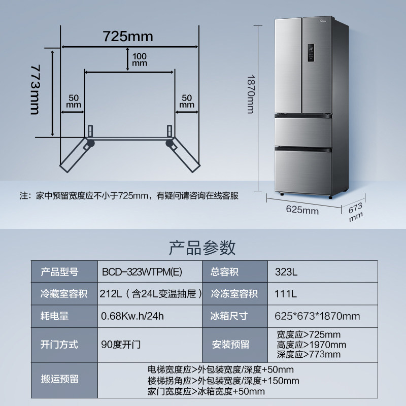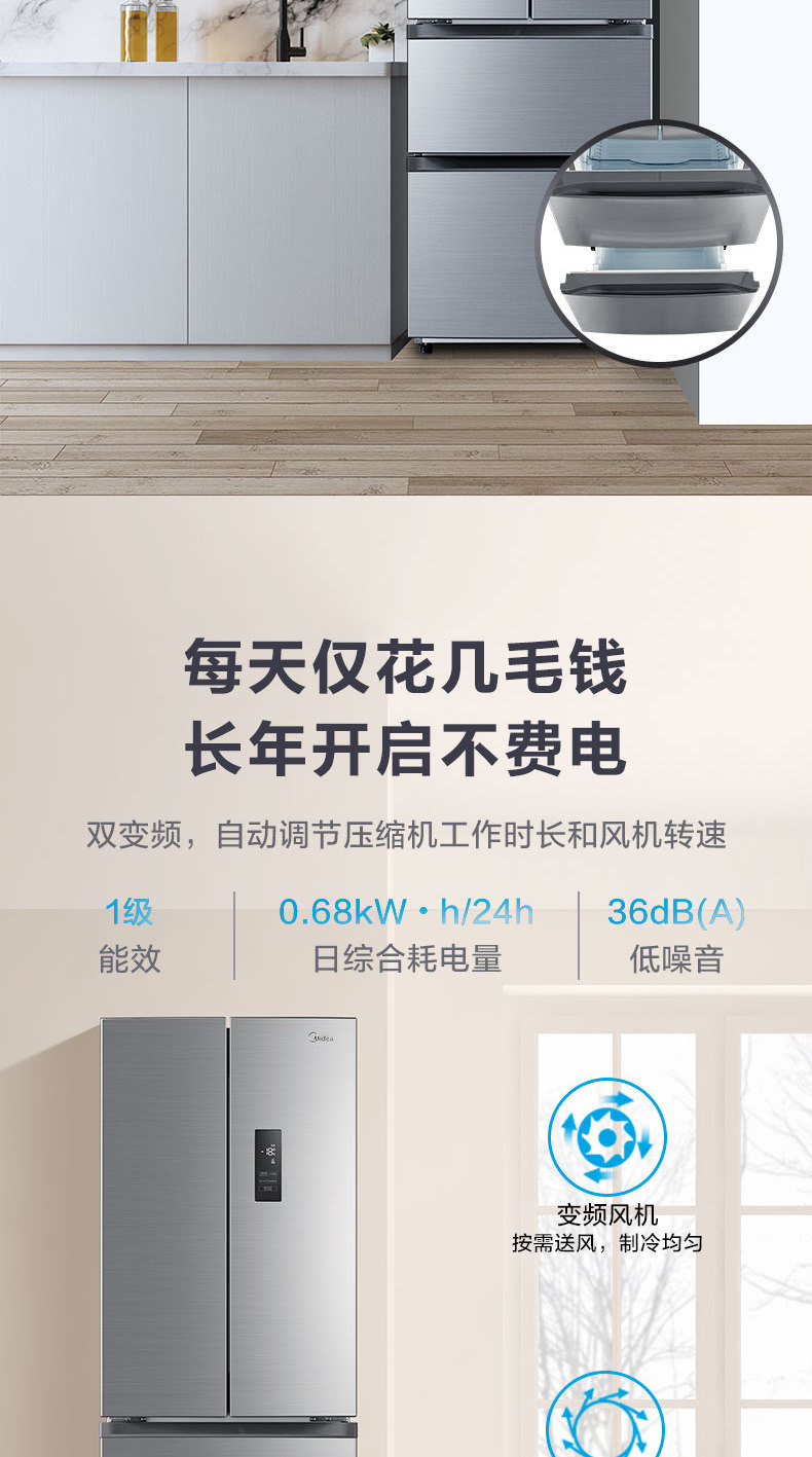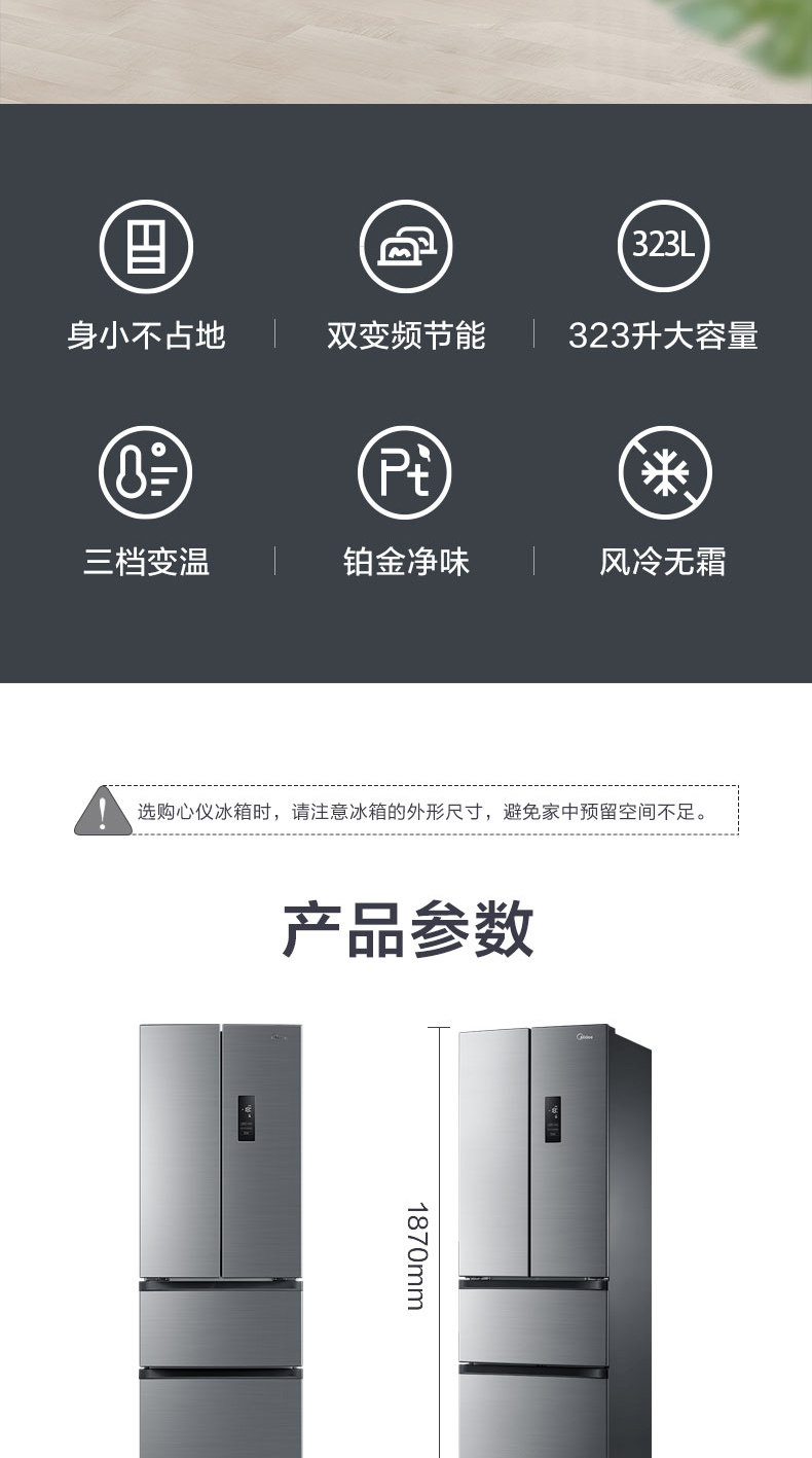 Midea Smart Home Appliance BCD-323WTPM (E) Домохозяйство энергии в холодильнике.