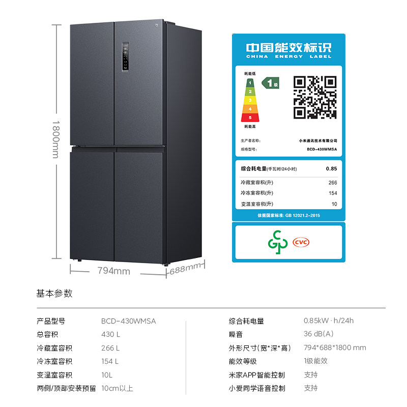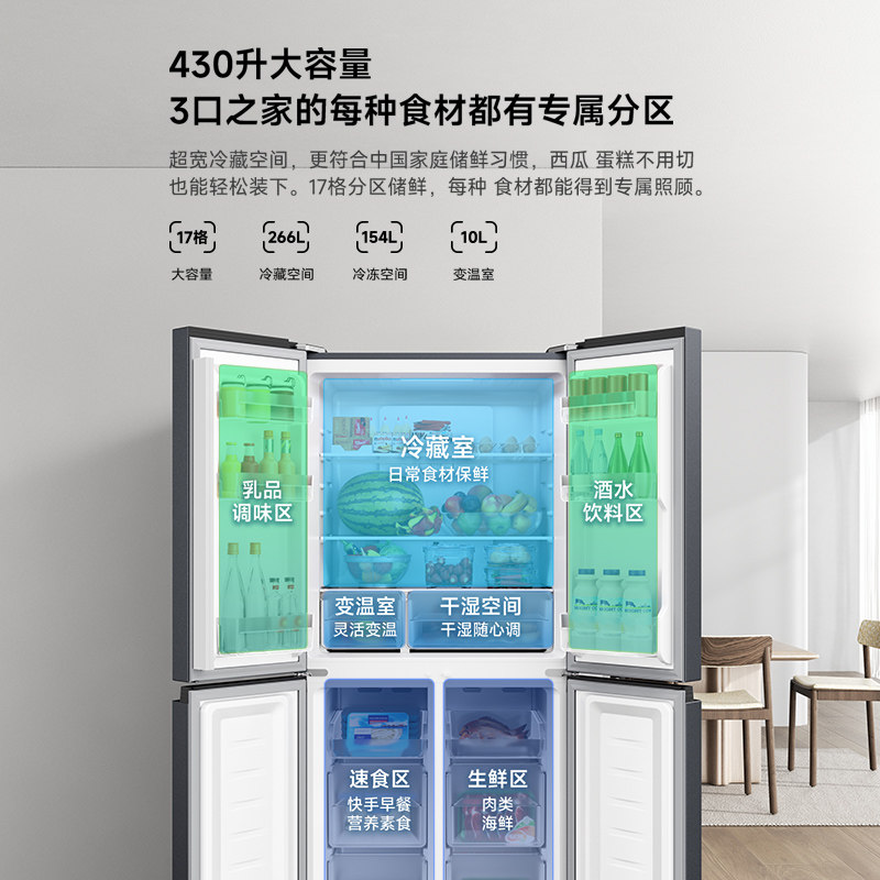 Xiaomi 430L Cross Four -Door Double -Door Double -Door Wind -Cold Первая частота переменная частота энергия Savory Smart Mi Family холодильник холодильник