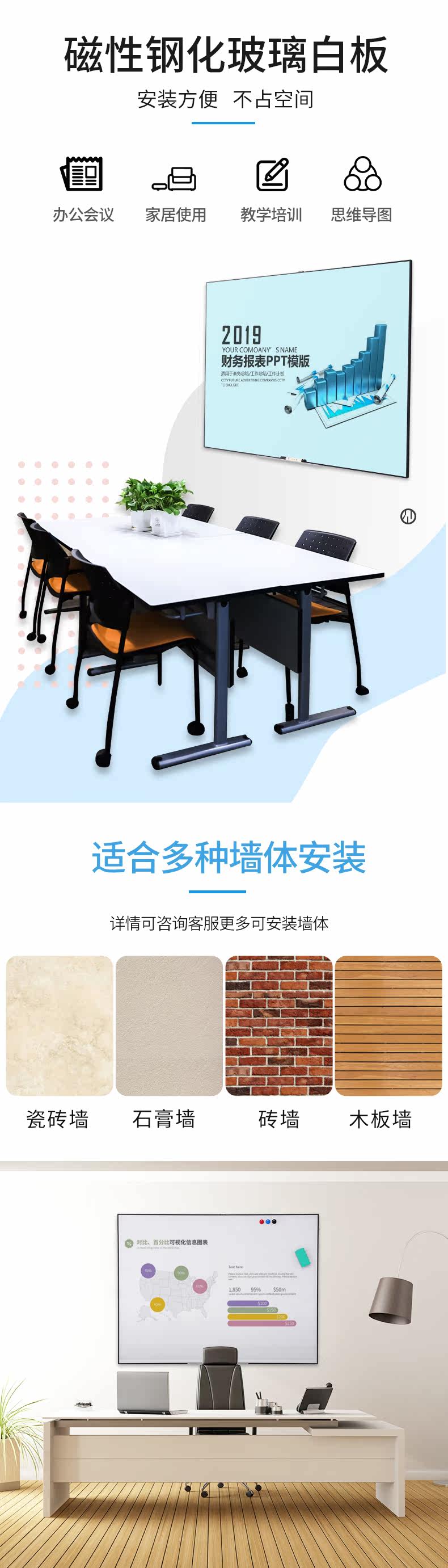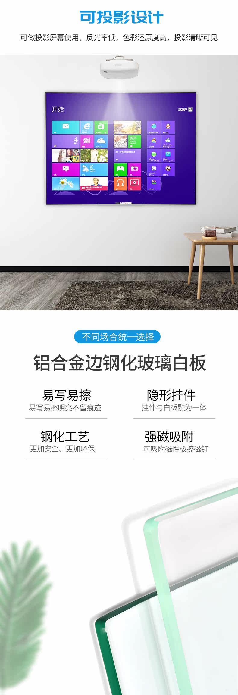 Проектируемая и написанная двойная матовая магнитная измельченная стеклянная доска. Конференция конференции по преподаванию и обучению на стене на стену с большой доски письменная доска на стене, домашнее детское блокнот, настенный подвес