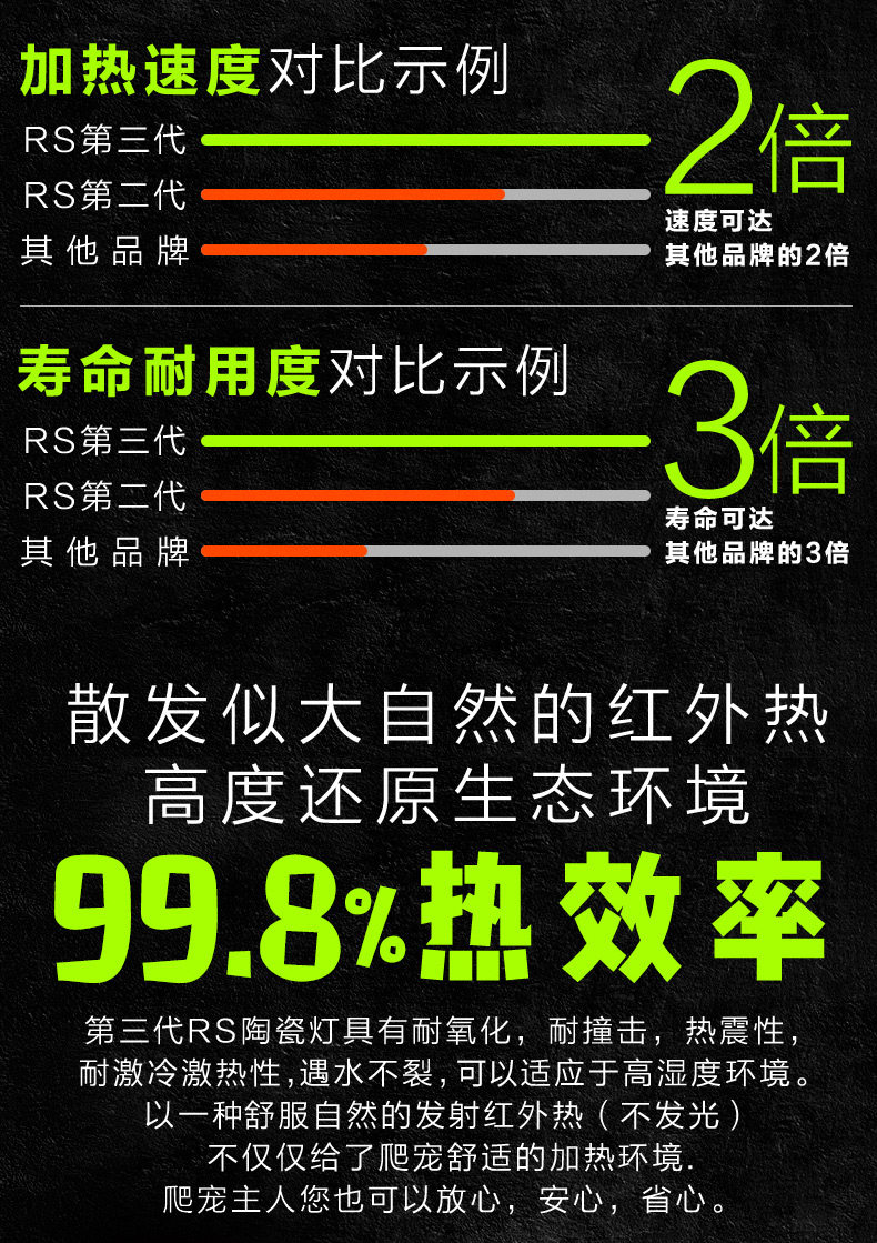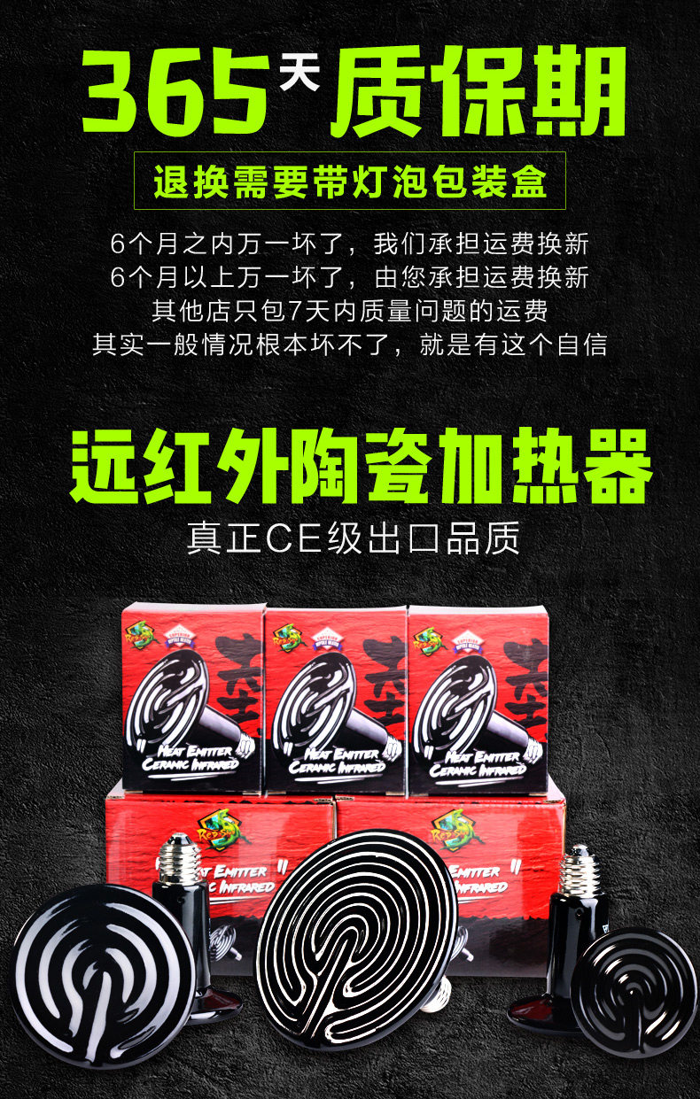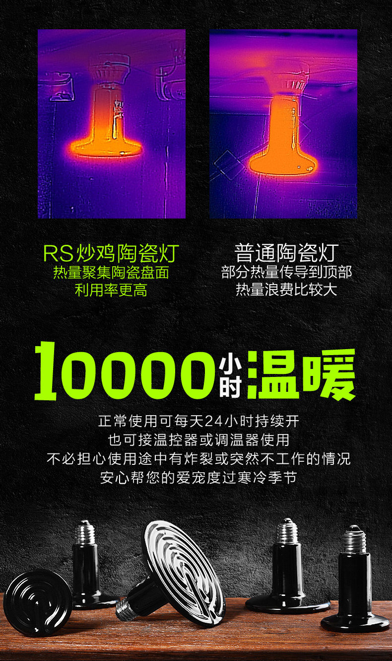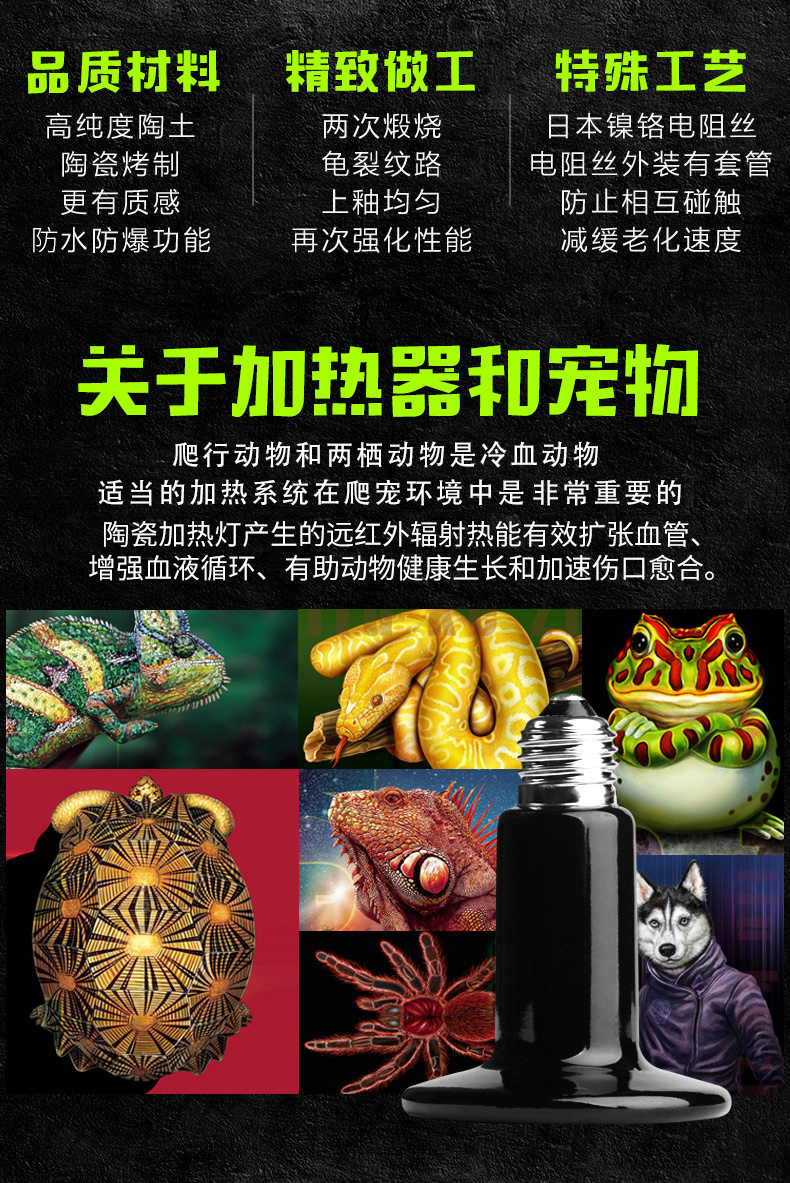 Температура поверхности керамической лампы, как правило, достигает 1-200 градусов, и домашние животные с легковоспламеняющимися материалами и домашними животнымивещьСохранить надлежащее расстояние,в противном случаеТаким образом, последствия на ваш собственный риск!