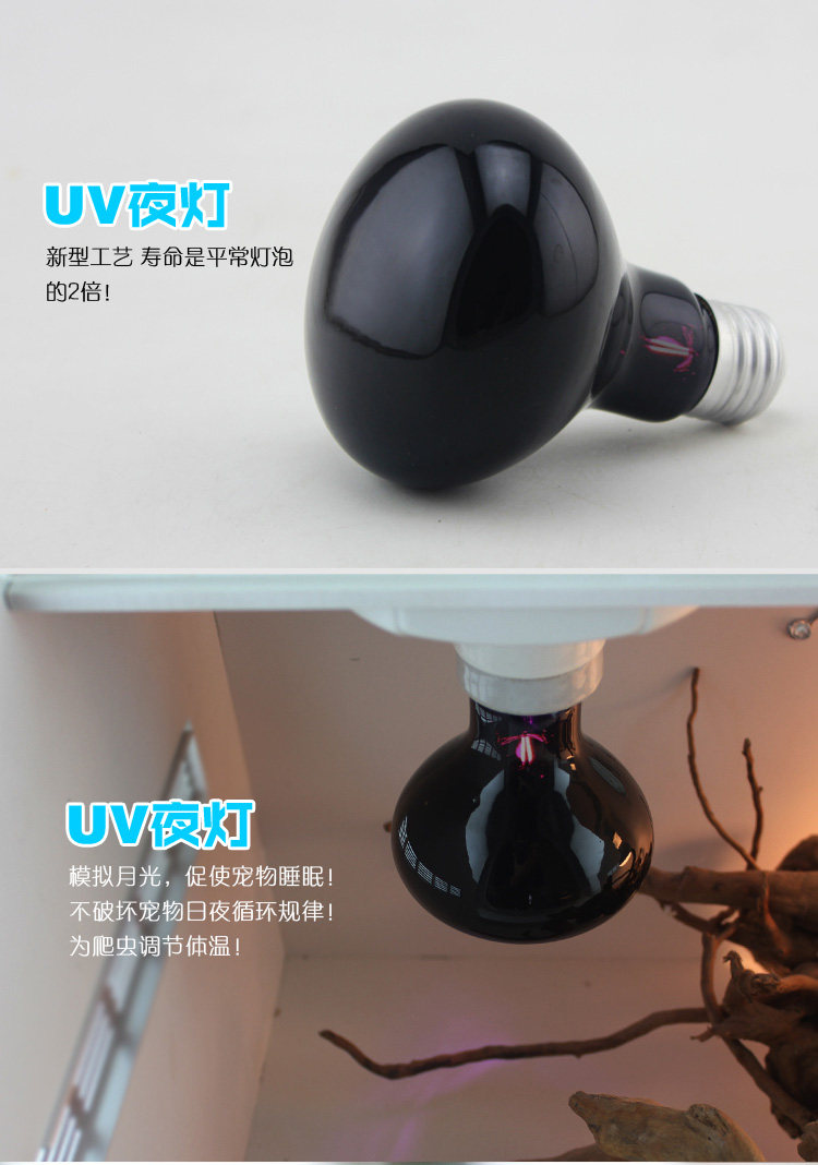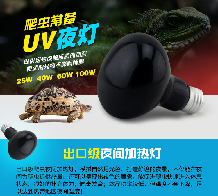 ● Предоставьте основные калории жизни рептилий и пищеварения.Не разрушит нормальный цикл поведения животных.Подходит для ночного использования.Его можно использовать 24 часа в сутки с ежедневными огнями рептилий.