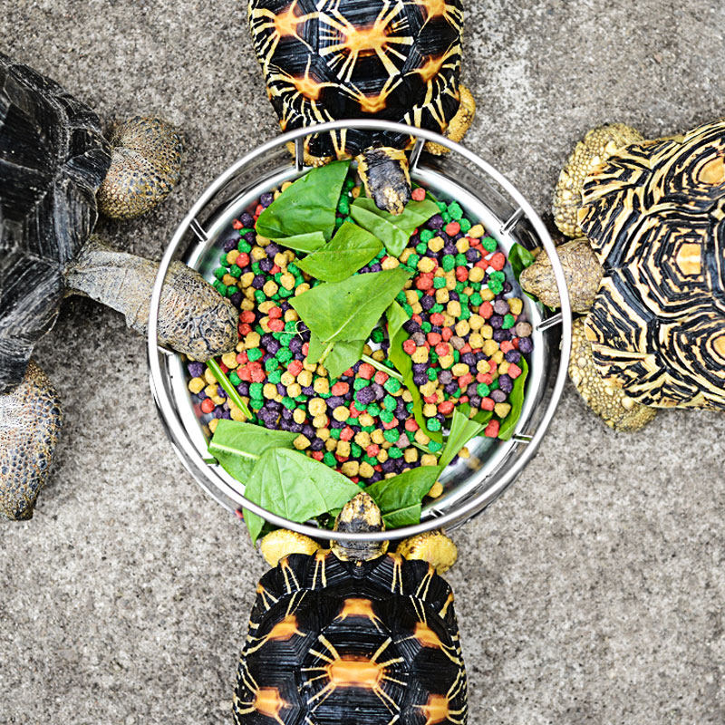 304 Земля из нержавеющей стали половина воды Черепаха кормушка черепаха пищевая бассейн водяные лотки, ползающие ящик для размножения на столе пищи с желтым краем