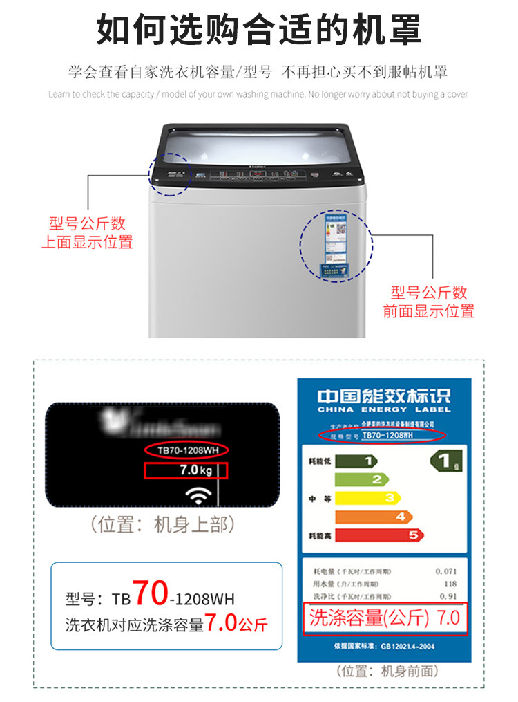Стиральная машина для стиральной машины капюшона Водонепроницаемое солнцезащитный крем Полно