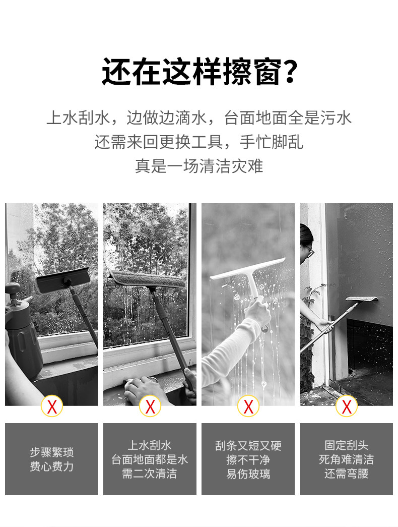 Царапинг стеклянного артефакта мебели для очистки и очистки ветровых окон с обеими сторонами с телескопическим стержнем Scratchr