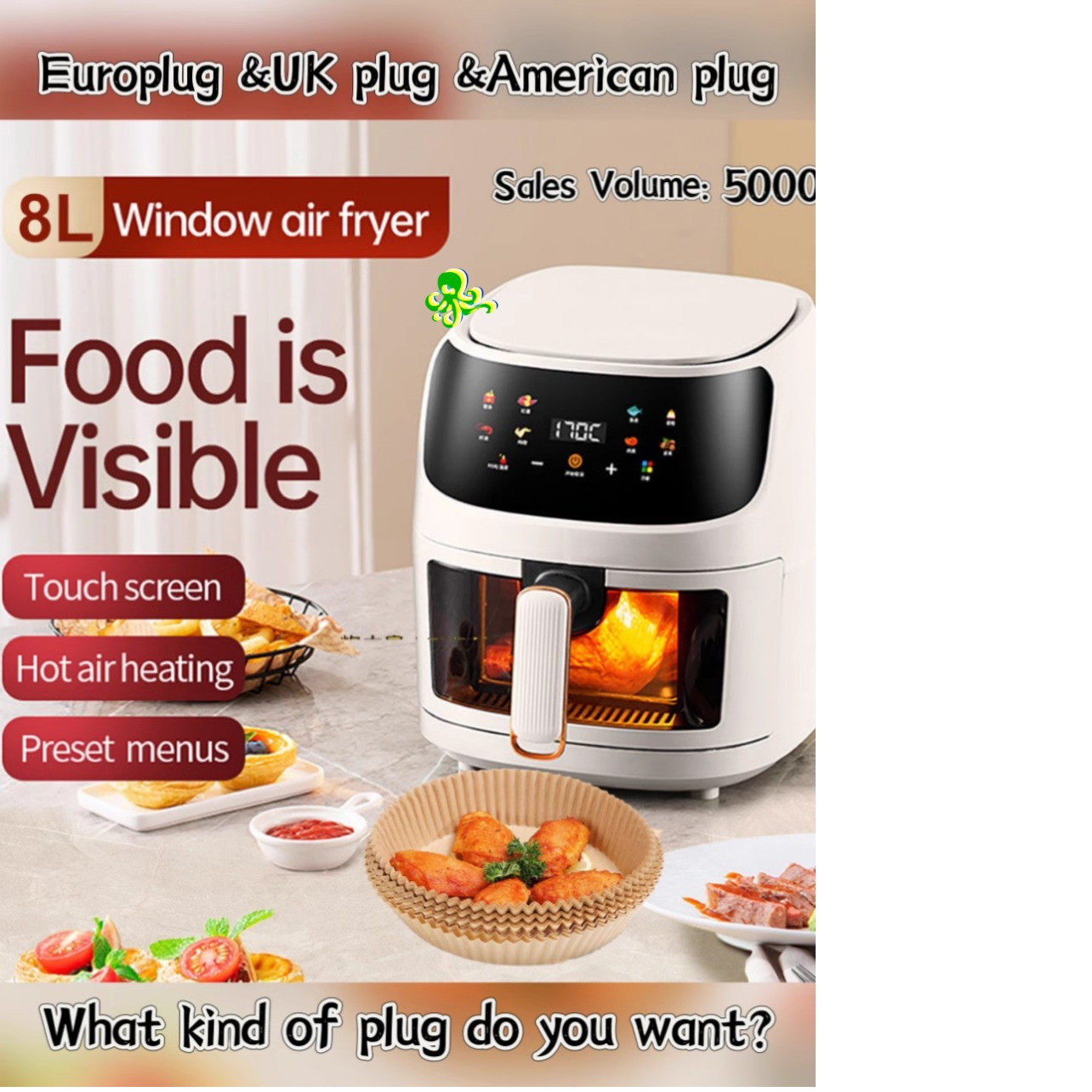 8л Аэрофритюрница Духовка Аэрофритюрница Безмасляная плита с антипригарным покрытием