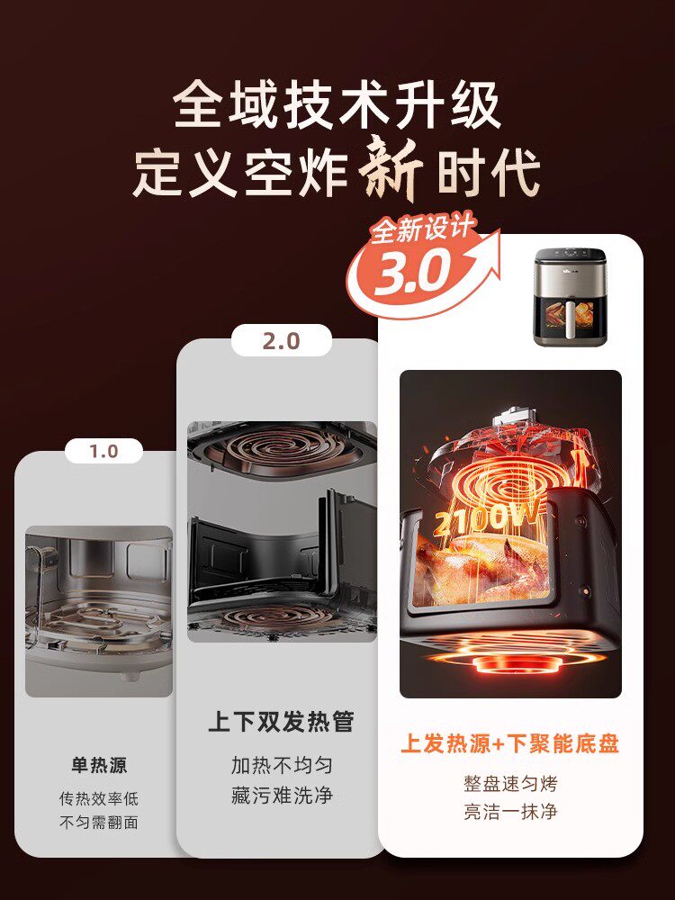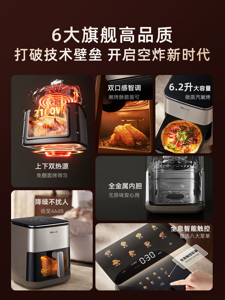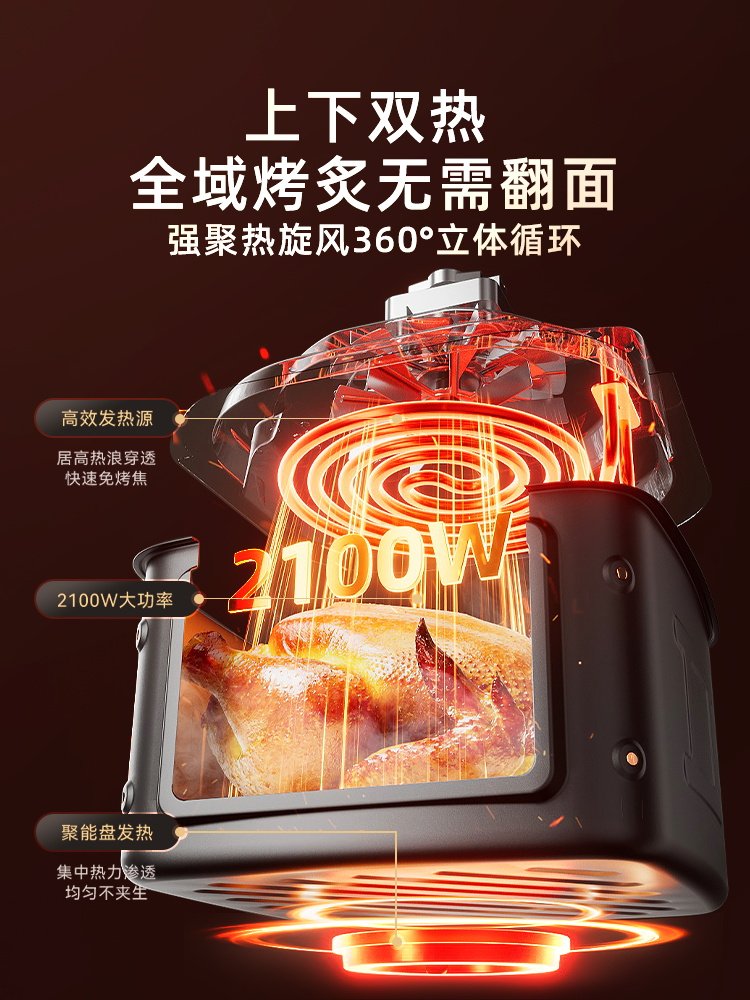 Воздушная фритюрница Bear с визуальным двойным нагревом, электрическая духовка большой емкости без поворота, встроенная новая воздушная электрическая фритюрница