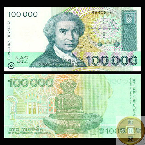 Хорватия 100 000 Danar 100 000 юаней Новая гарантия большая стоимость -стоимость иностранного банкнота специальная цена