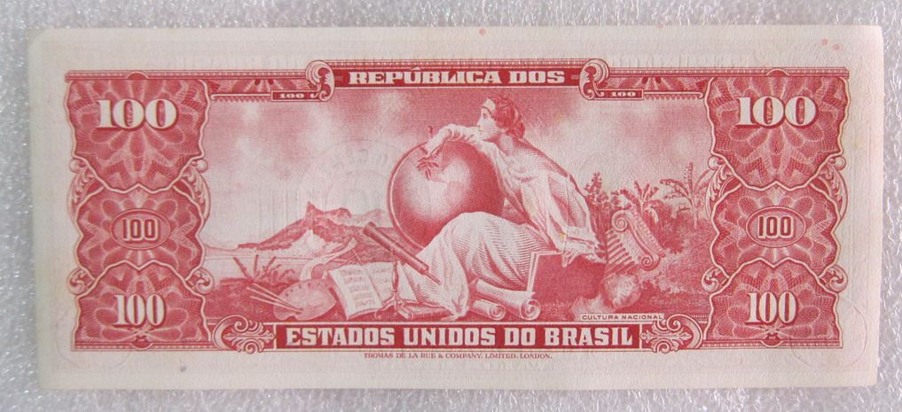 Совершенно новый UNC Brazil 1966 Edition, штампованные со 100 Cruzero Banknotes