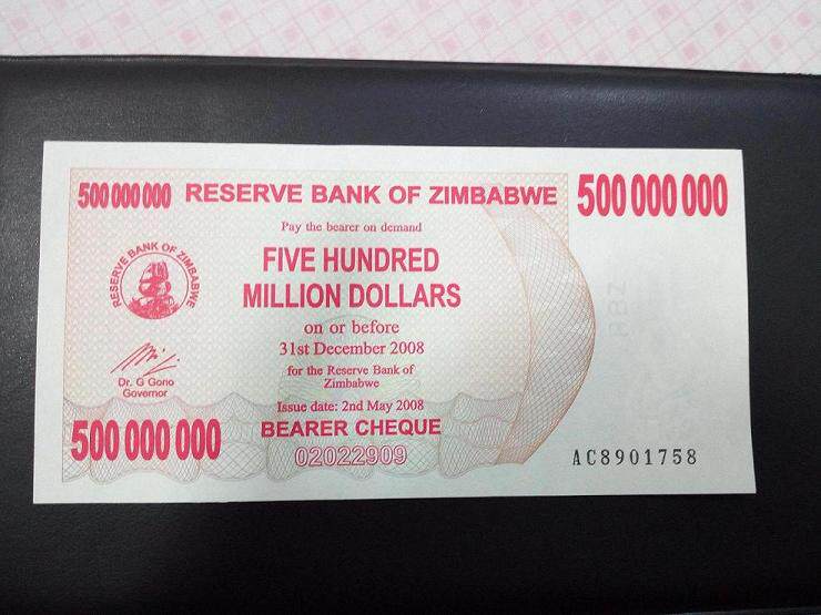 Предшественник нового крупнейшего в мире UNC в мире банкнота Zimbabwe 100 Trillion Yuan, 2008 Edition 500 миллионов юаней