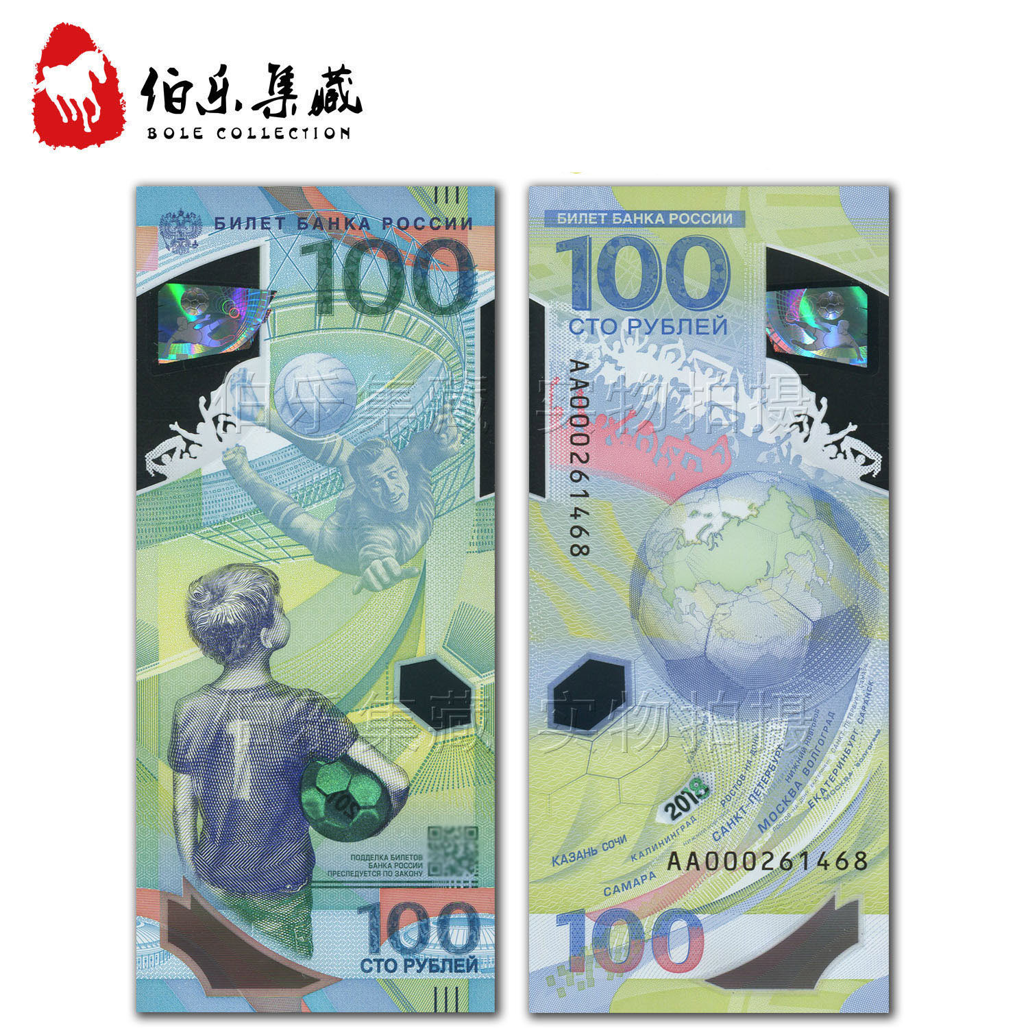 Согласно объявлению Российского банка России, 22 мая будут выпущены Российский чемпионат чемпионата мира.Стоимость носы банкноты составляет 100 рублей, пластиковый материал, а циркуляция составляет 20 миллионов.Памятные банкноты являются первой пластиковой банкнотой, разработанной Россией и третьими памятными банкнотами в России.