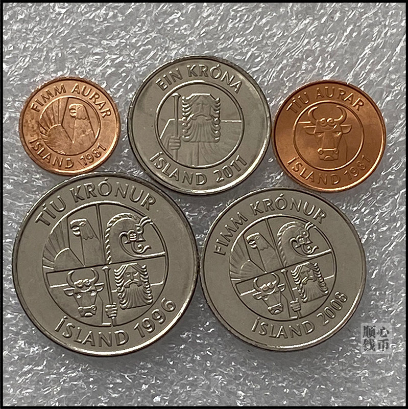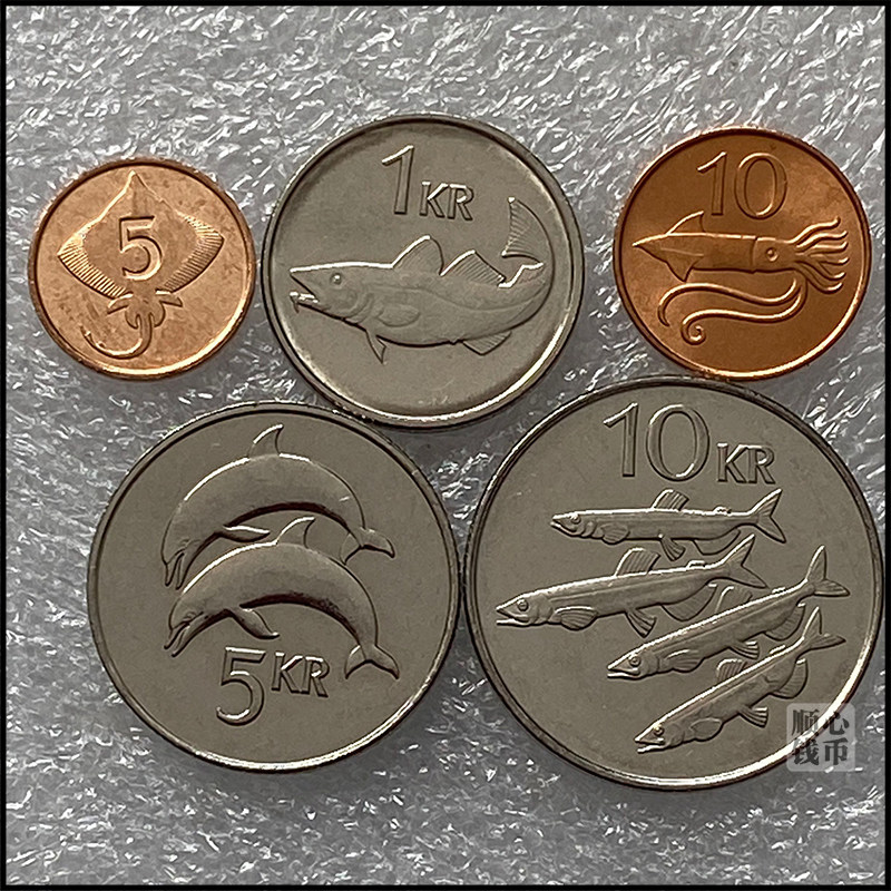 Бесплатная доставка Исландия 5 монет 5 Ola 1 5 10 Cracks Fish Морские животные Европейская иностранная монета иностранная валюта