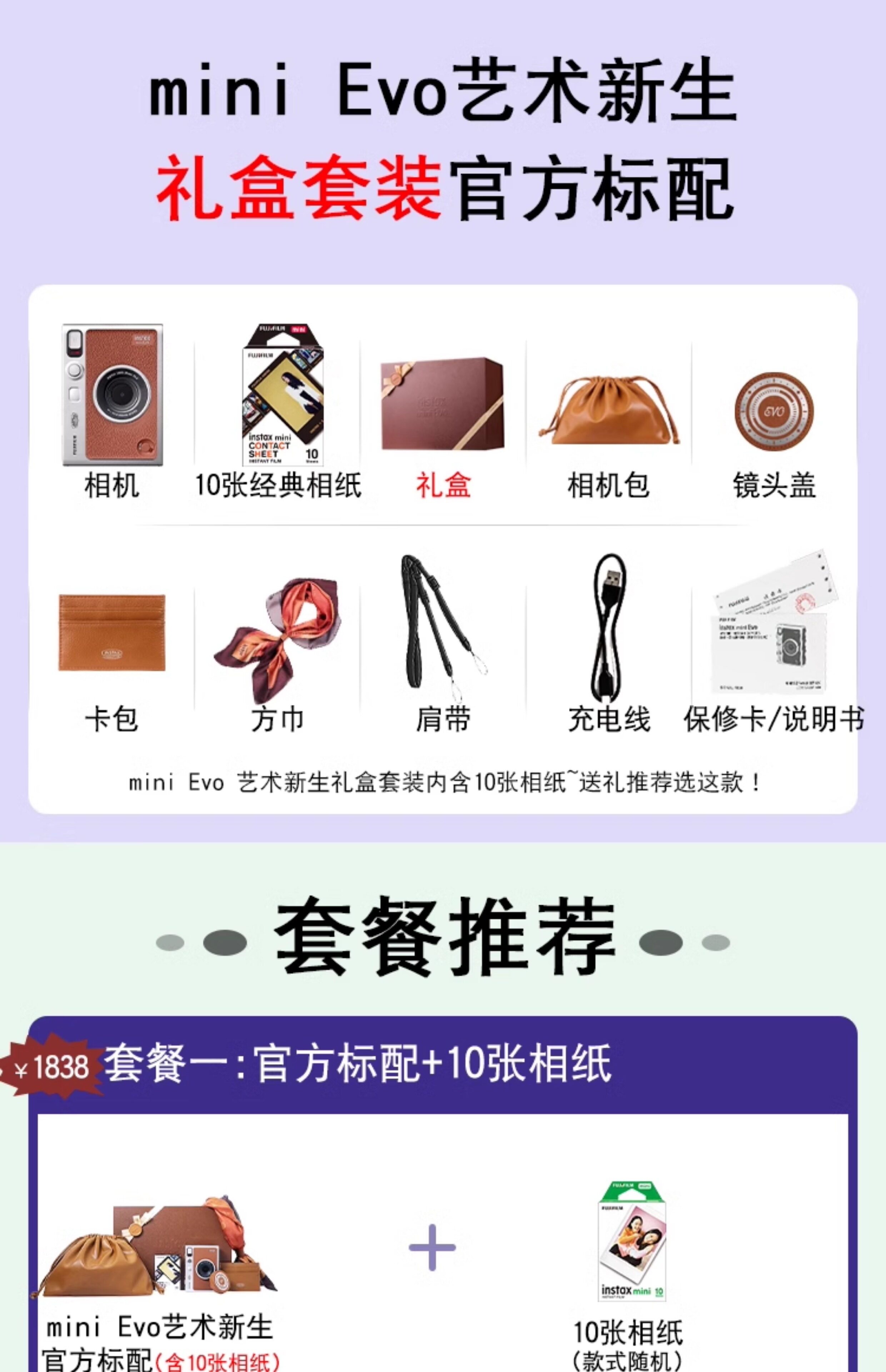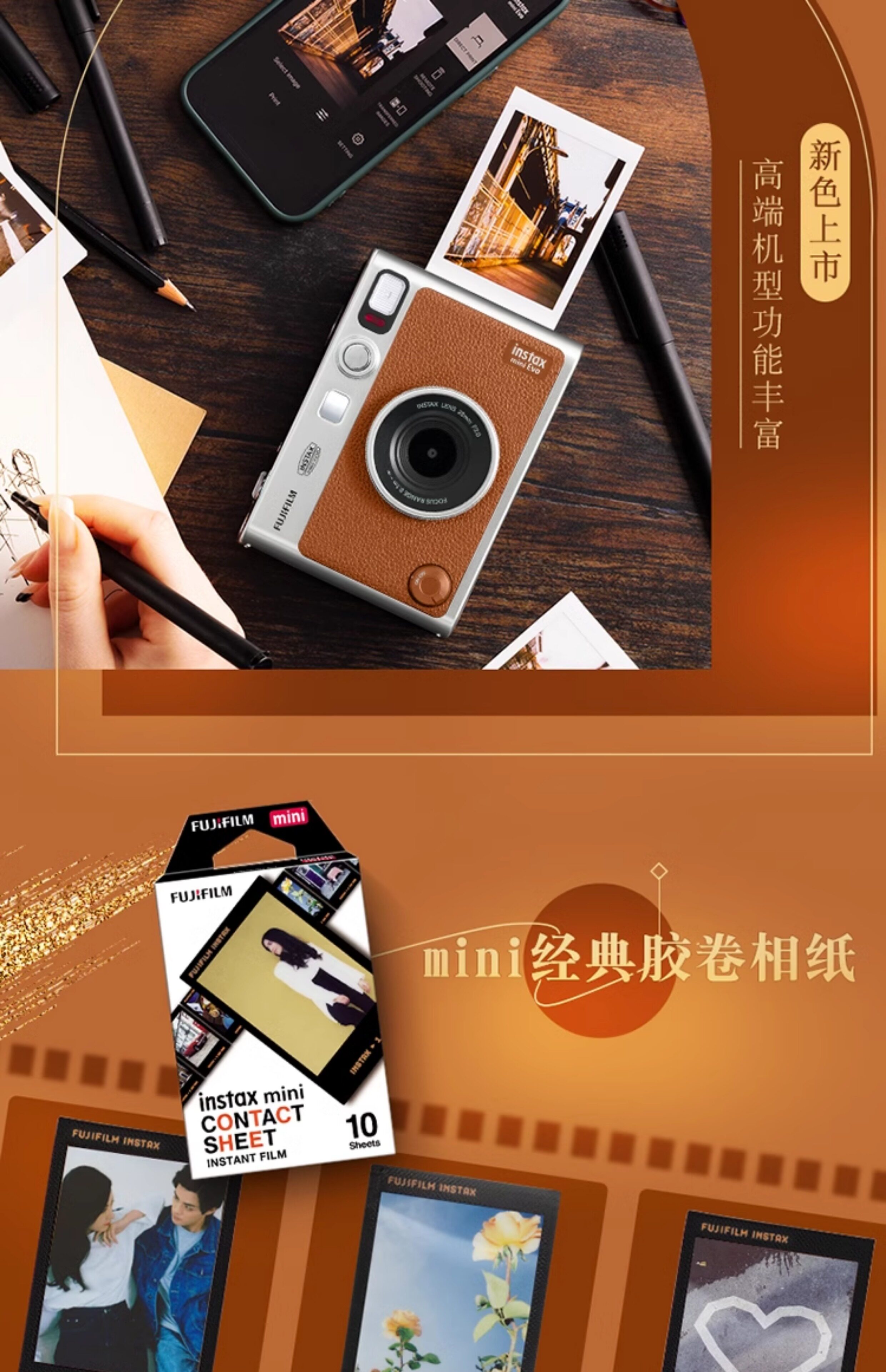 Новый Fuji Instax Mini Evo изготовлен из подарочной коробки Evo Art Neworn с 10 частями фазовой бумаги