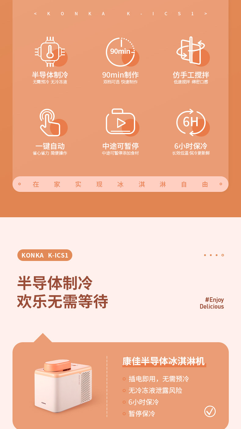 Konka, маленькая автоматическая машина для мороженого, полностью автоматический
