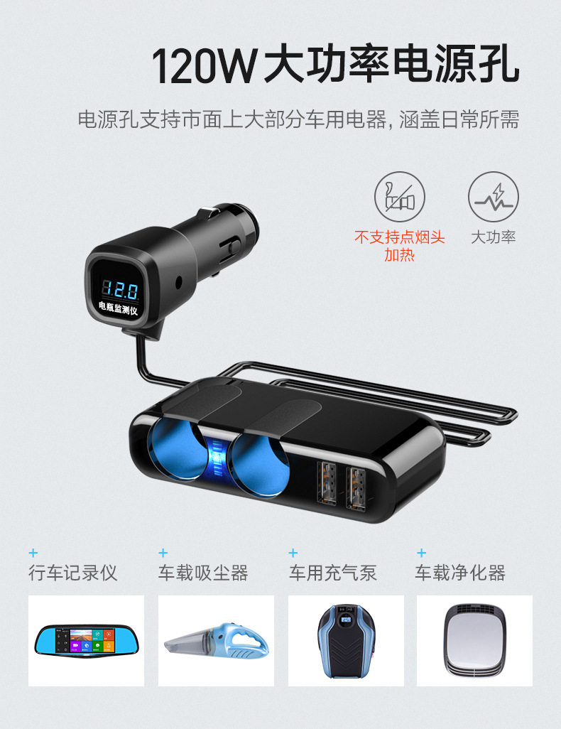 Автомобильный зарядный автомобиль один перетаскивание трех сигарет зарядка автомобиля много -функция, одно сопротивление, две переоборудование конверсионной головки.