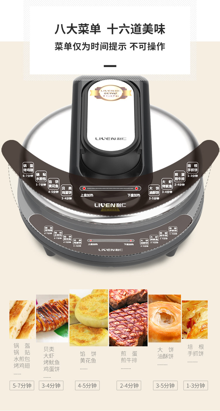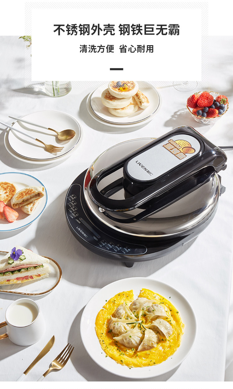 Лирен Электрическая хлеба пекарня J8345 Deepen 34 см из нержавеющей стали, покрытой двойной нагревательной кастрюлей с двойной нагревательной кастрюлей