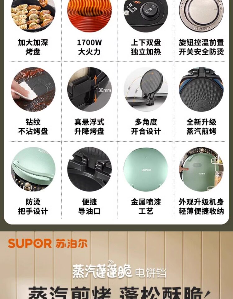 Supor Electric Bakery Double -Sided Heating Home Home Frying Cake Machin