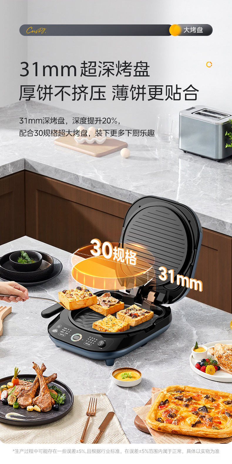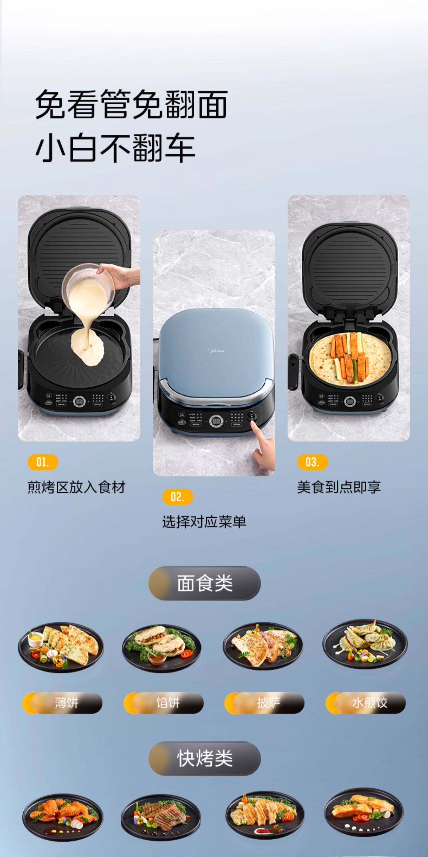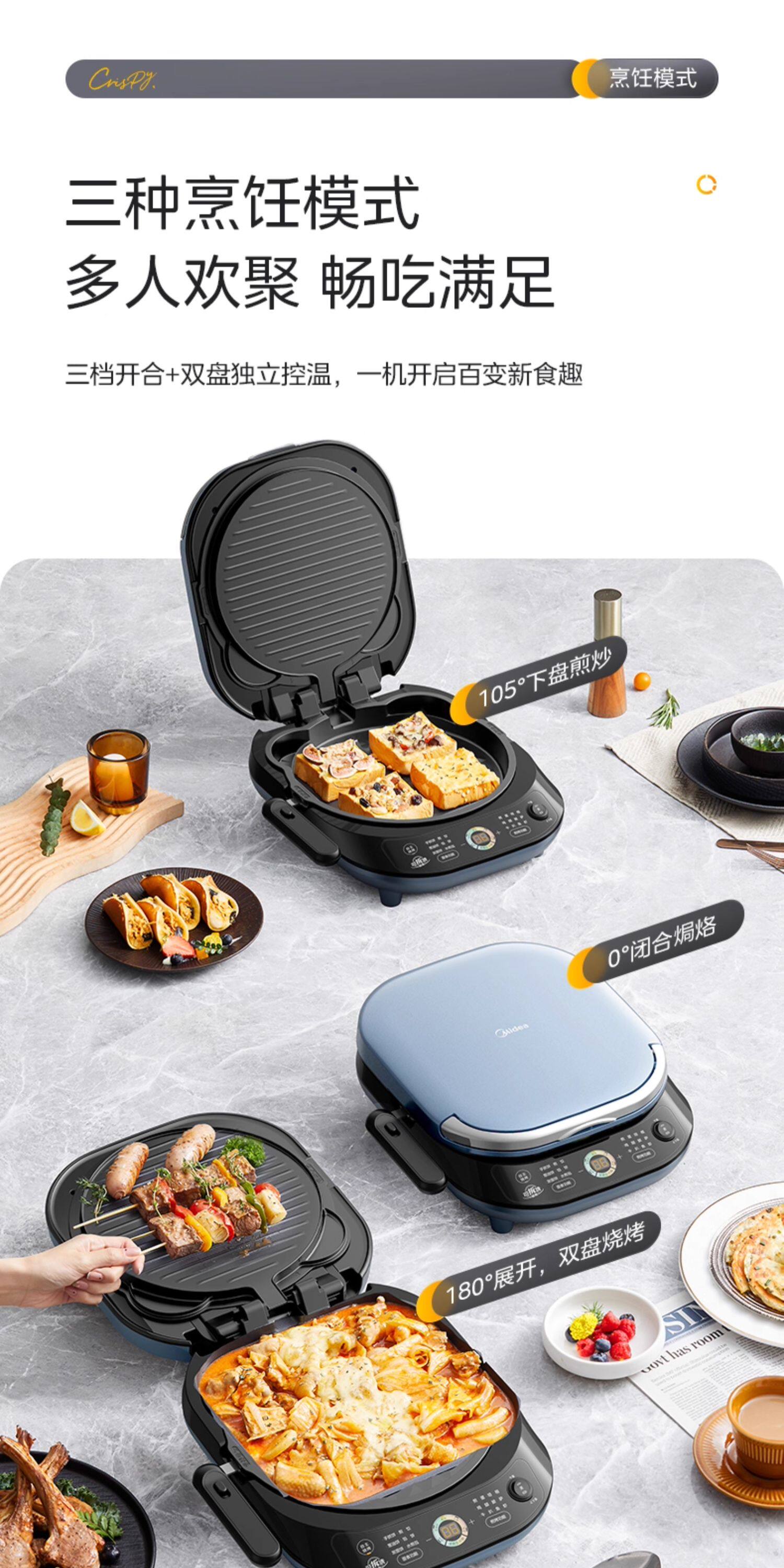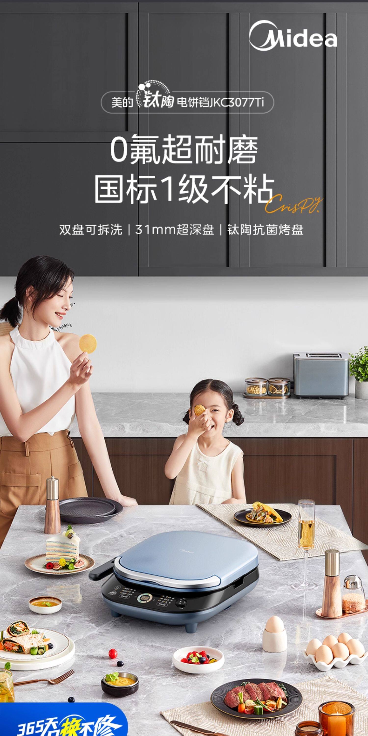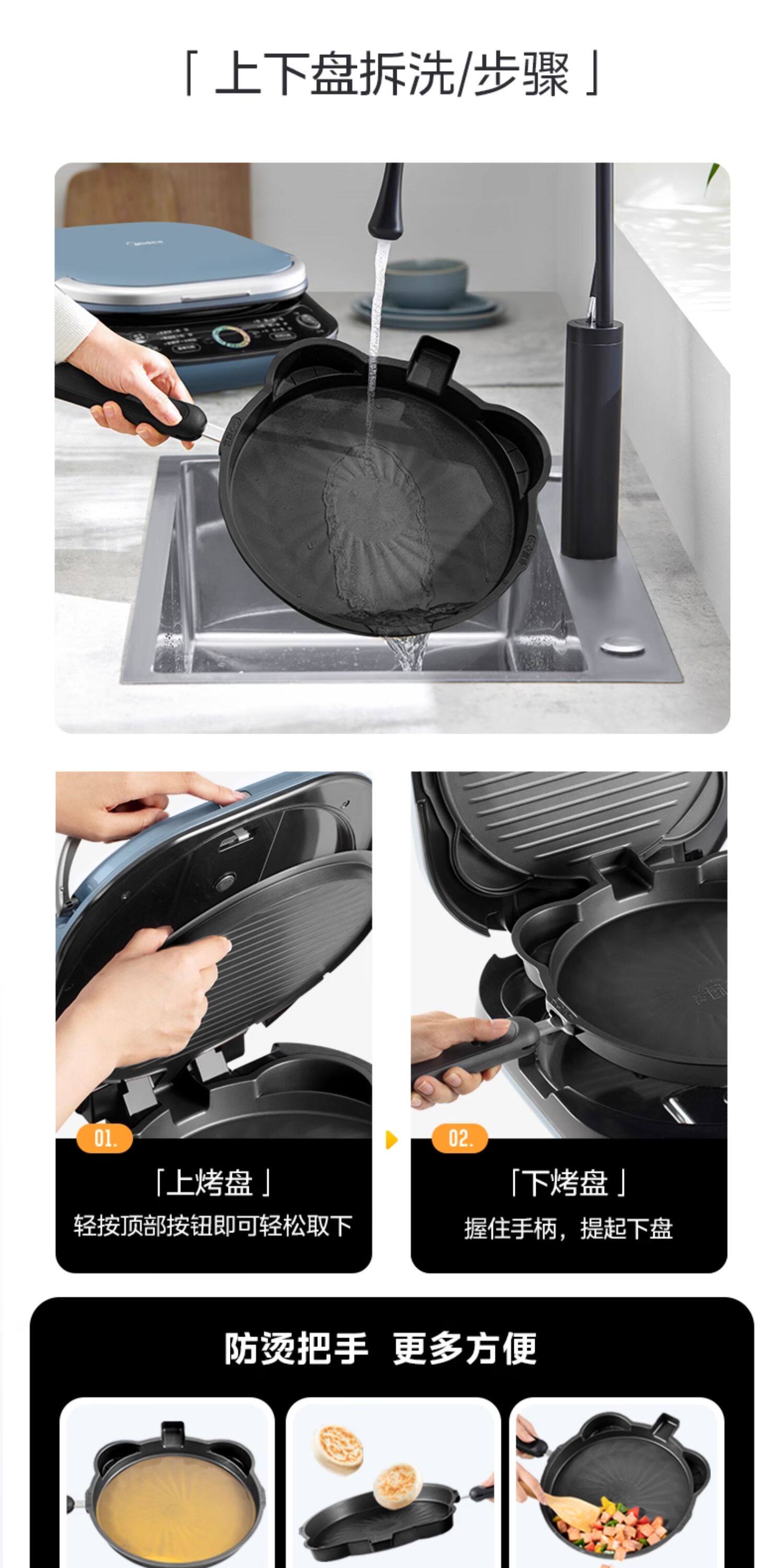 Электрическая сковорода для блинов Midea для бытового двустороннего нагрева, съемная и моющаяся, углубленная и увеличенная, машина для жарки блинов из титановой керамики, новый официальный аутентичный продукт