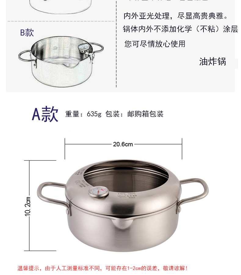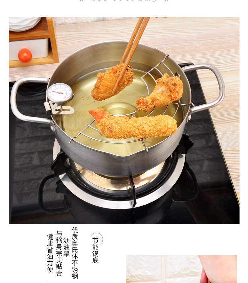 Фритюрница для темпуры из нержавеющей стали, бытовая маленькая фритюрница, мини-газовая индукционная плита, экономящая топливо, толстое антипригарное плоское дно, круглая