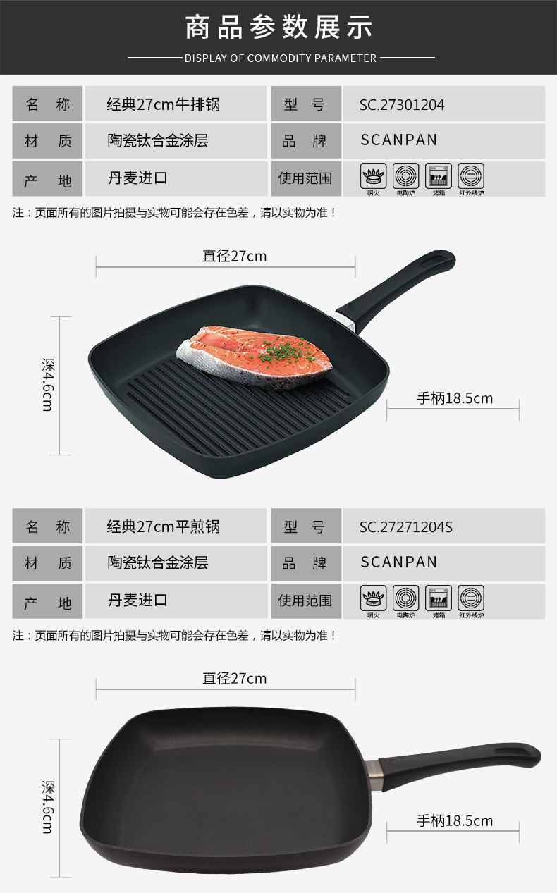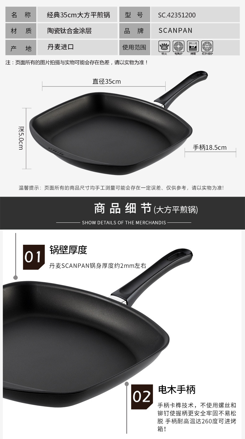 SCANPAN Стейк -пан -пан -дама импортированная нежигальная горшка с одной ручкой, бездымная неживая, неживая сковорода