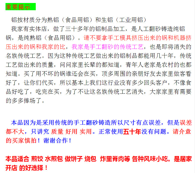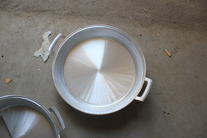 Бытовая старомодная алюминиевая кастрюля без покрытия, сковорода, гриль из утолщенного алюминия, изготовленный вручную, блины, жареные булочки.