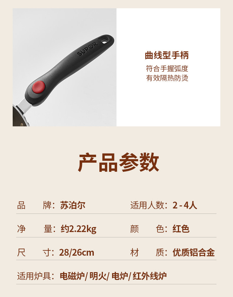 Supor Poly Oil Bottom Pand, без липкого кастрюли, дома маленькая сковорода, блин, стейк из яиц, электромагнитная плита газовая плита