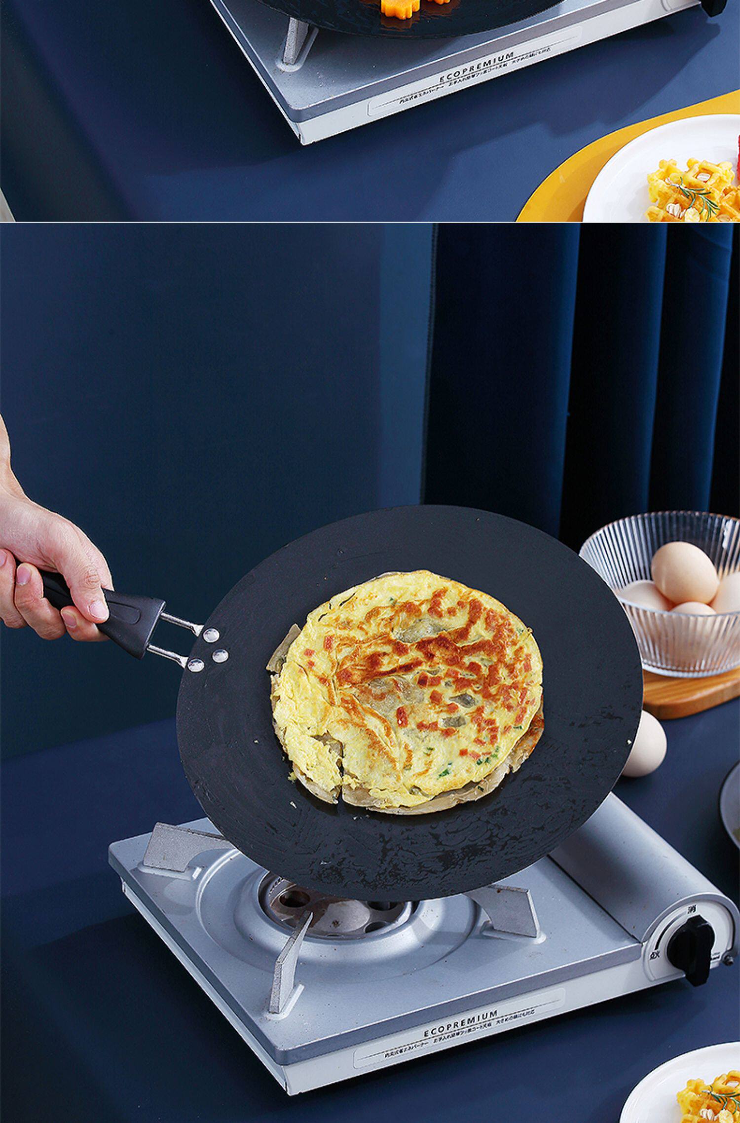 Несполенная блинная кастрюля тысячи слоев стейка из говядины, жареной кастрюли, кастрюли -кастрюли, блинчика, кастрюля, газовая плита, домашний блин -инструмент
