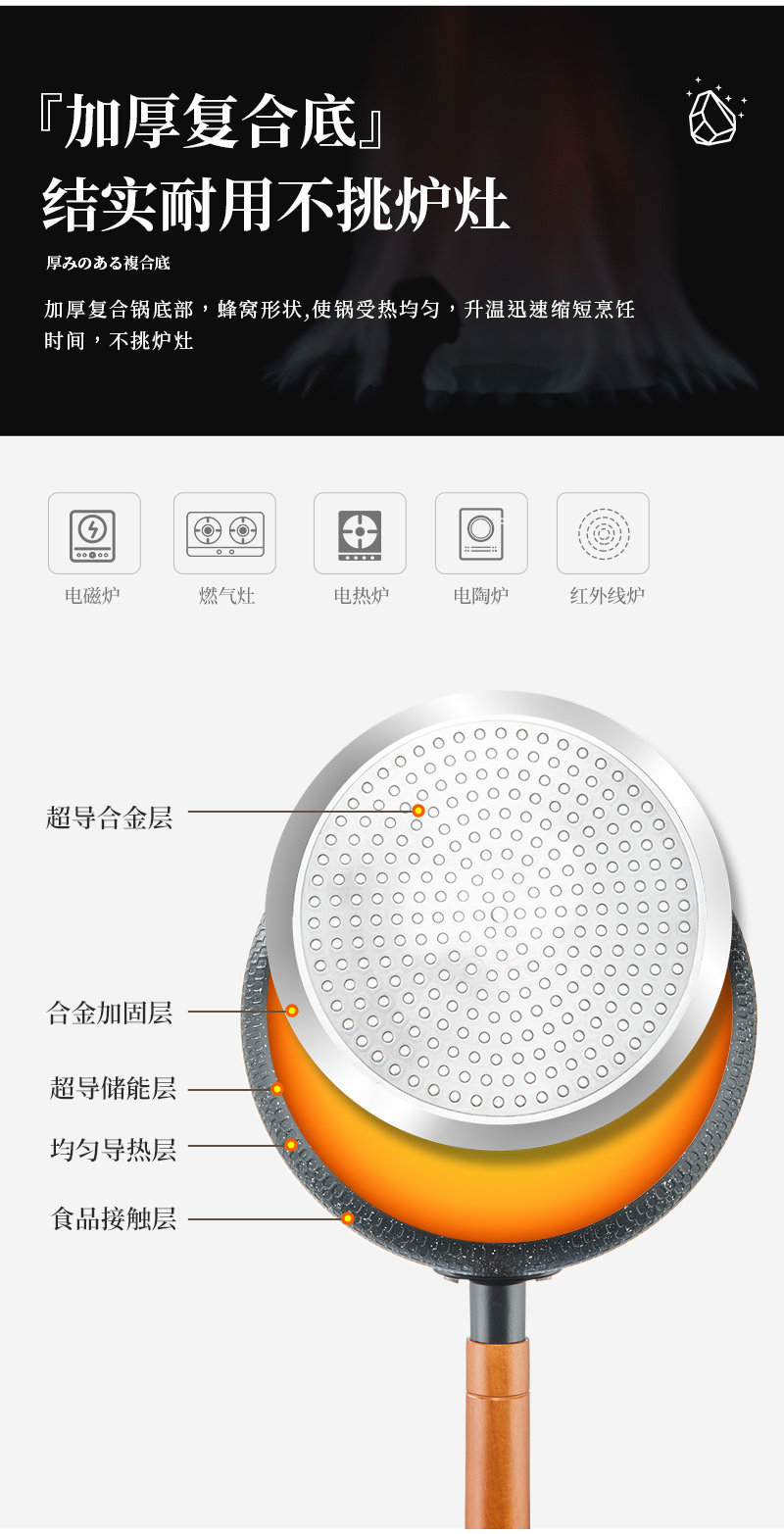 Утолщенная композитная золотая медицинская каменная сковорода для домашнего использования, индукционная плита, газовая универсальная сковорода с антипригарным покрытием