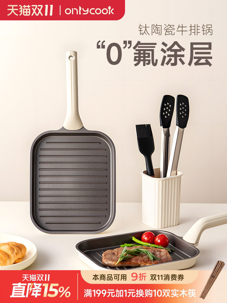 Onlycook титановая керамическая сковорода с антипригарным покрытием домашняя жареная стейк специальная полосатая сковорода без покрытия сковорода для завтрака
