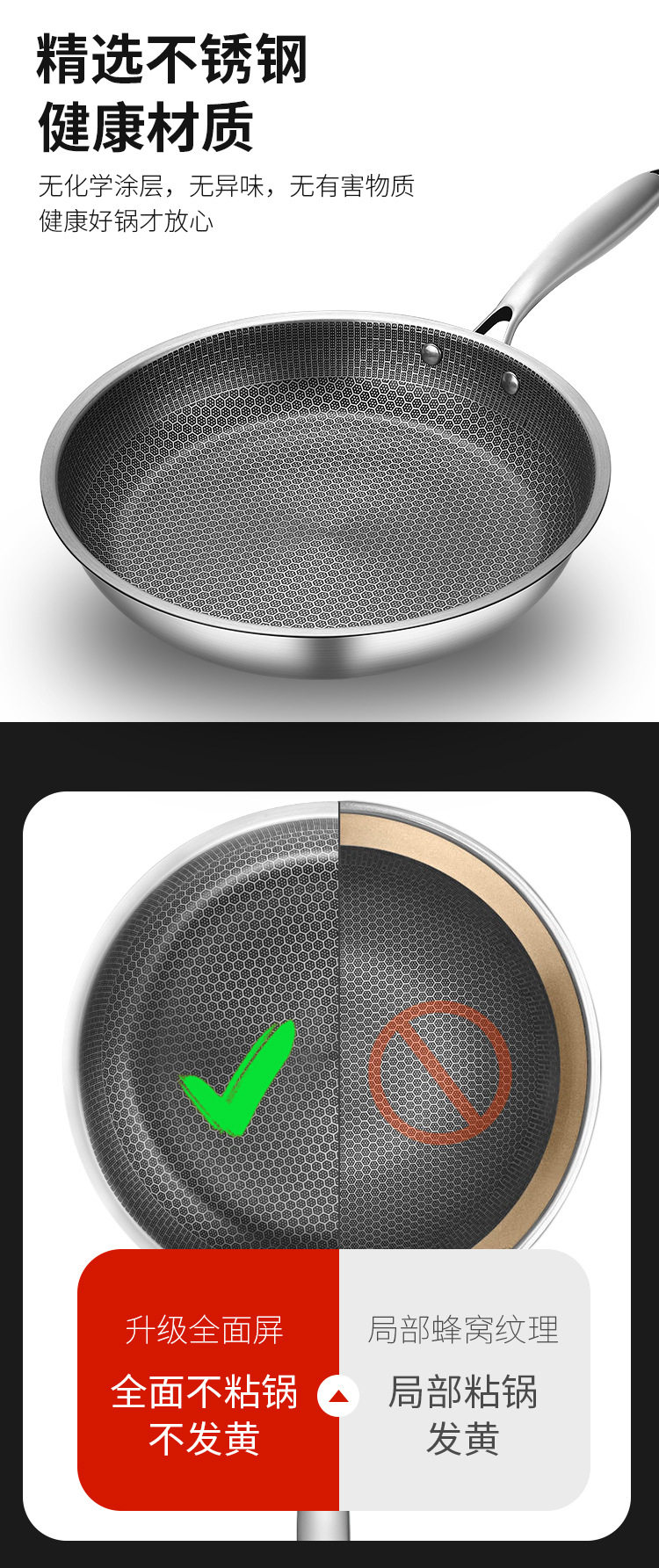 Трансграничная сковорода из нержавеющей стали, полноэкранная сковорода с сотами, домашняя сковорода с жареным яйцом, стейком, блинами, легко чистящаяся сковорода с антипригарным покрытием, вок