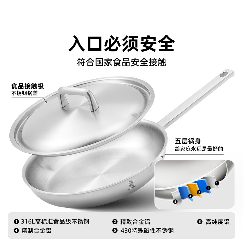 Сковорода Rydes с плоским дном из нержавеющей стали 316L, сковорода тамагояки, без покрытия, менее жирная, дымная, домашняя сковорода для стейков