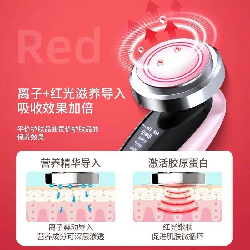Установите отрицательный ион.Теплый, слегка вибрирующий, красный свет и синий свет в одном инструменте красоты лица.