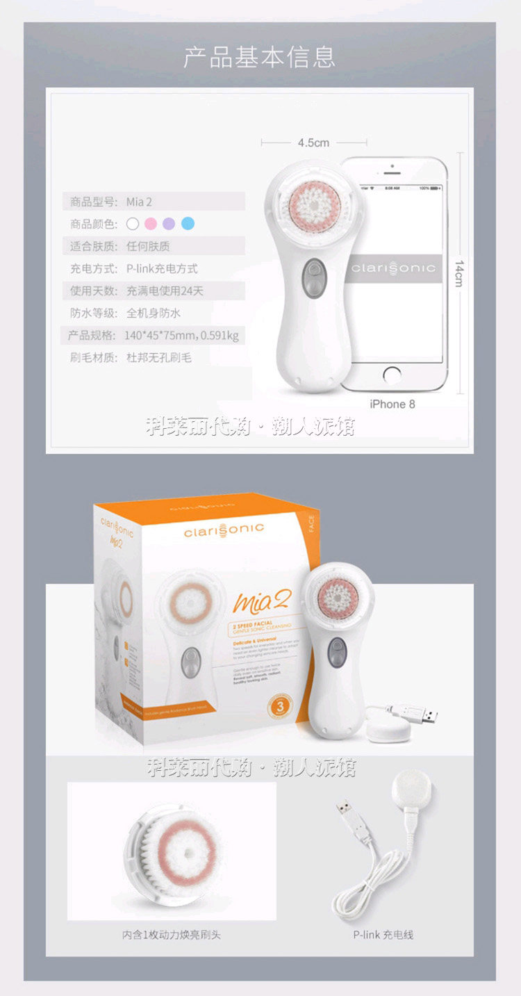 Clarison Clarisonic очищающий инструмент MIA2 Generation Face Artifact Aria Ультразвуковая электрическая очистка лица