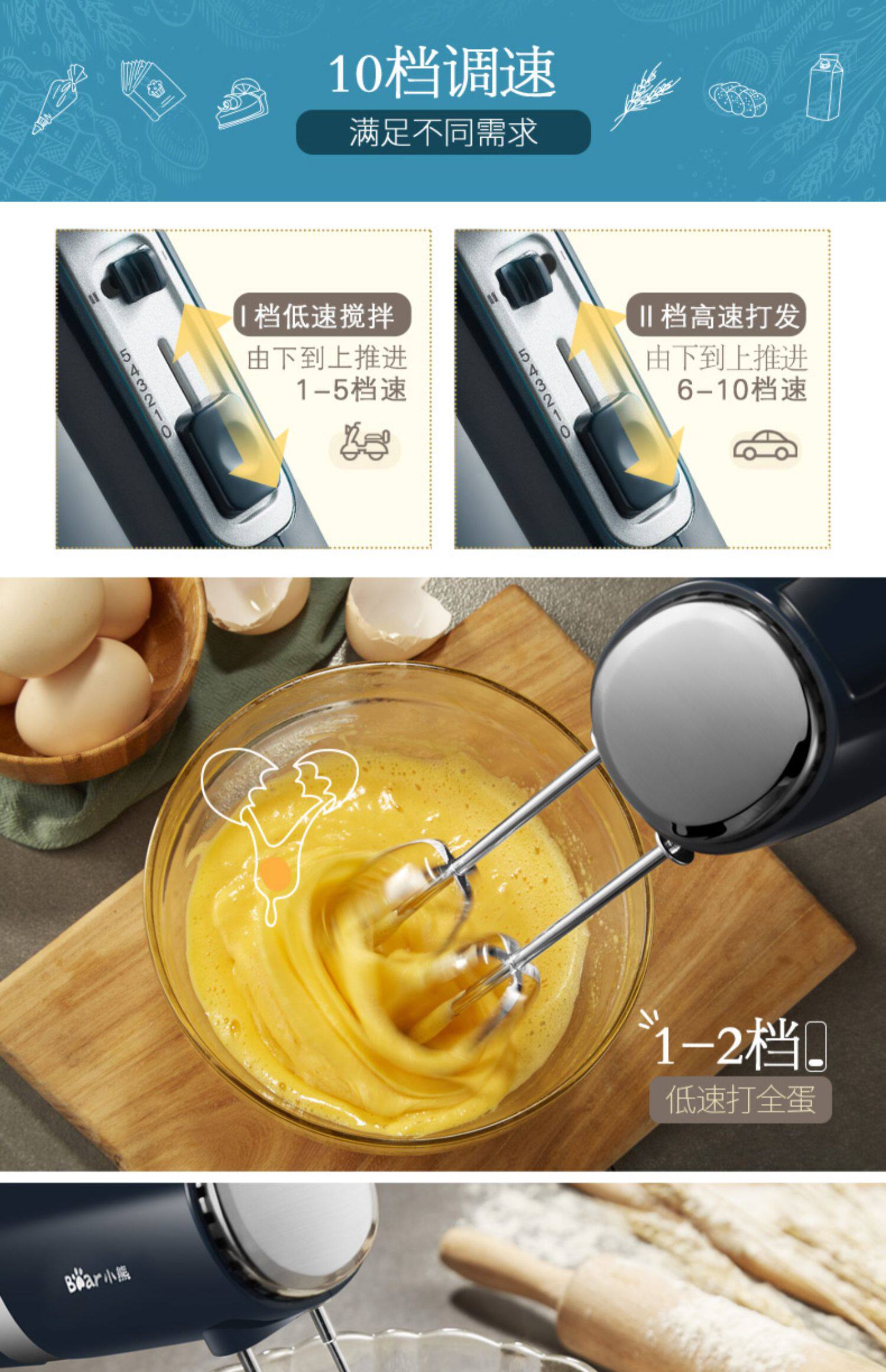 Электрическая бытовая взбивалка для яиц «Медведь», маленькая автоматическая ручная взбивалка для яиц, миксер для еды