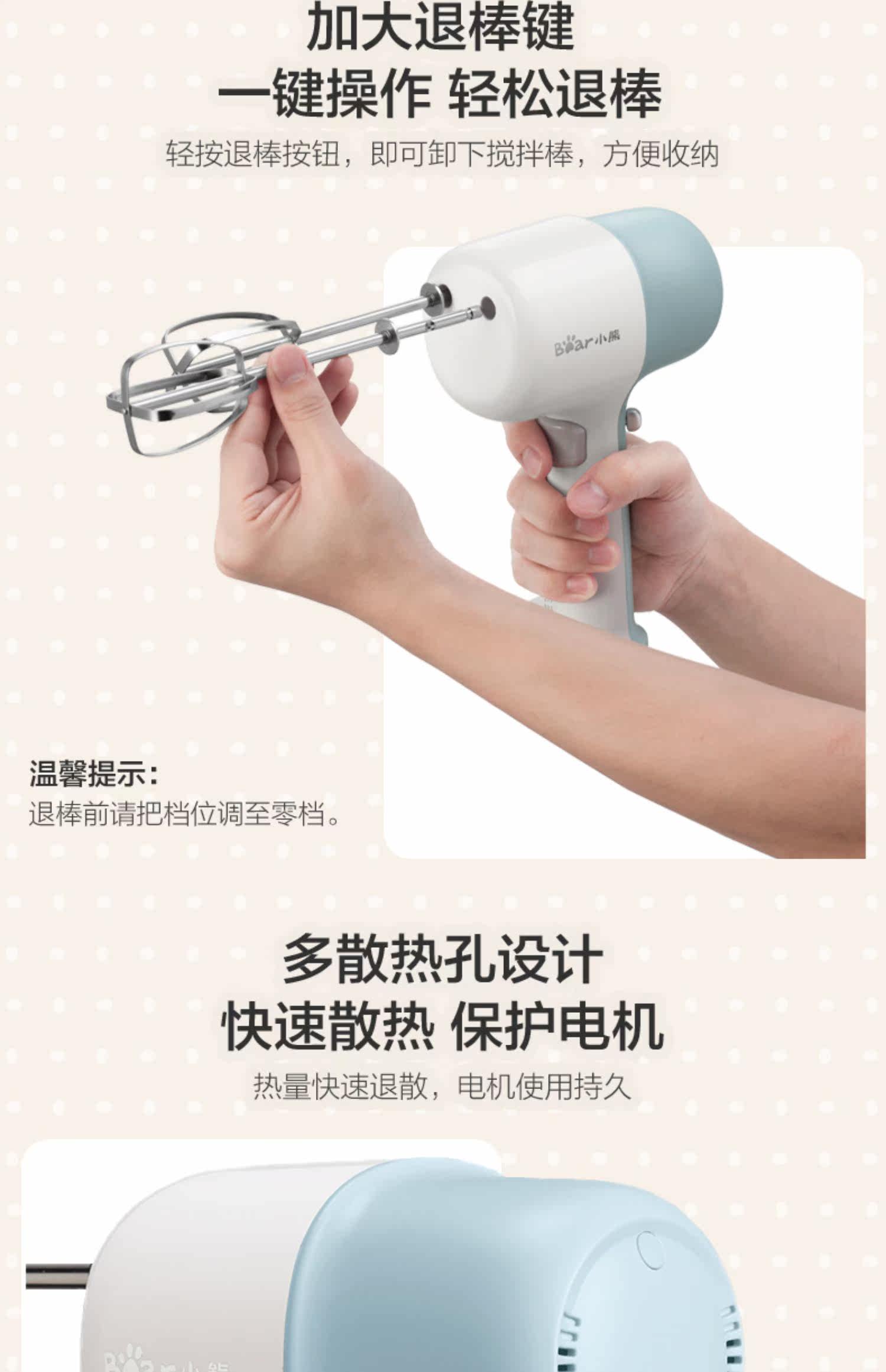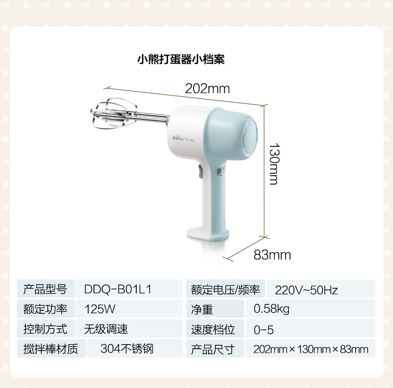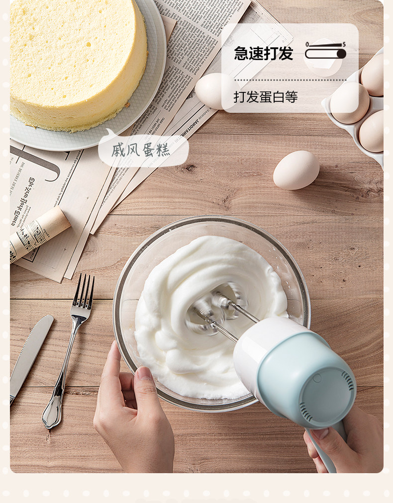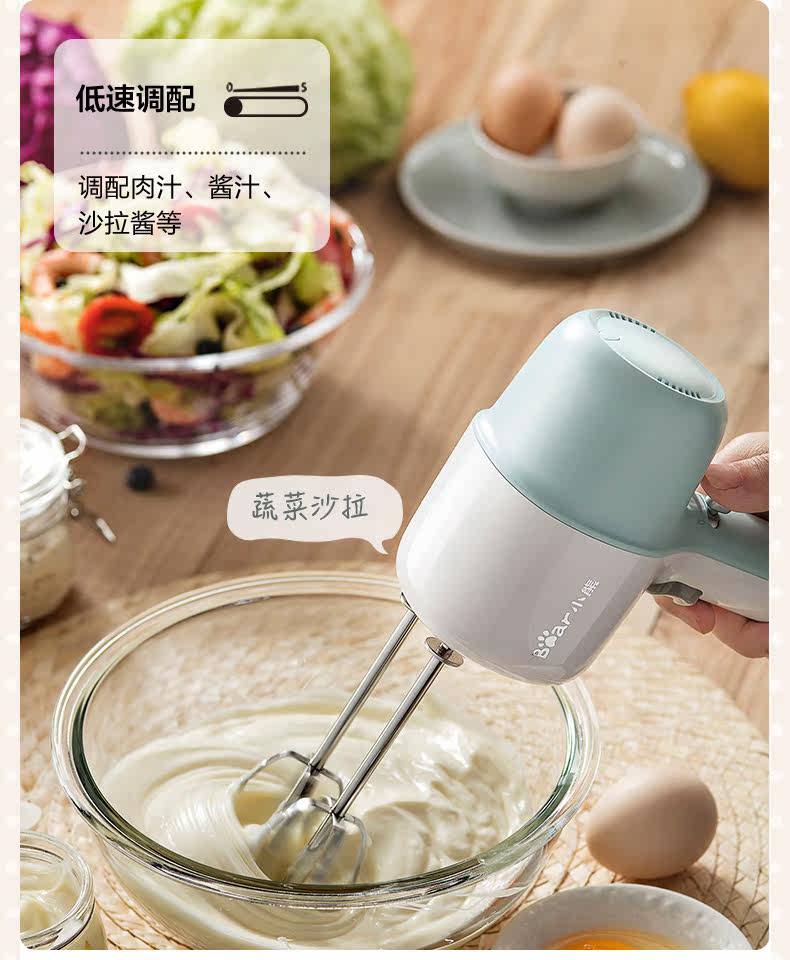Bear/小熊 DDQ-B01L1 Ручной небольшой венчик для яиц с двойной насадкой для взбивания сливок для выпечки