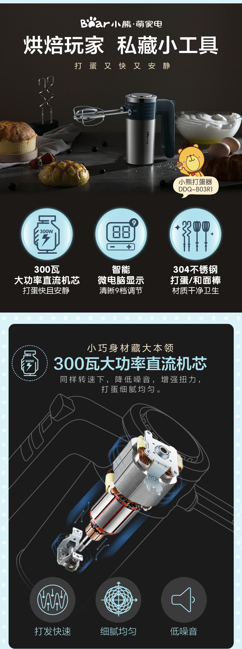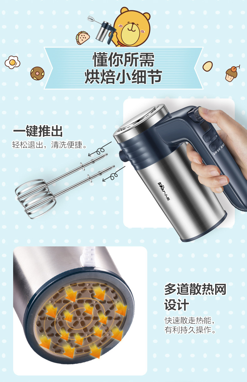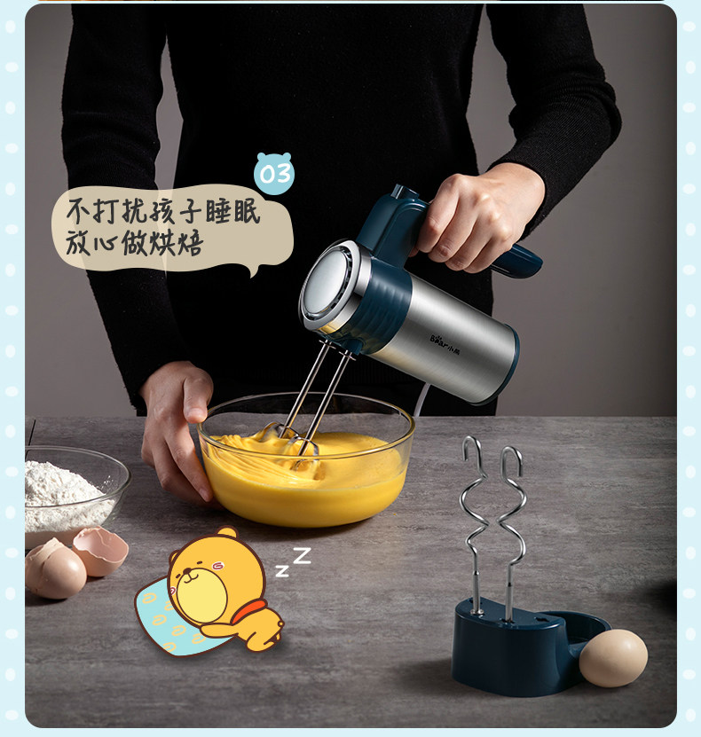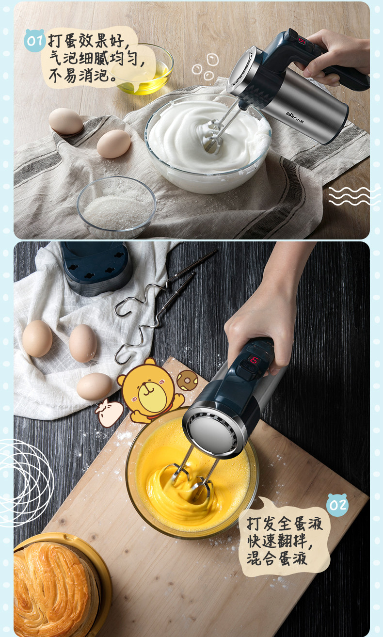 Электрическая портативная кремовая палочка для смешивания из нержавеющей стали, с медвежатами