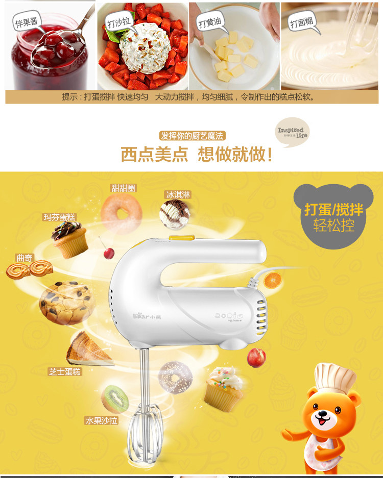 Электрическая портативная палочка для смешивания, кремовая система хранения, с медвежатами