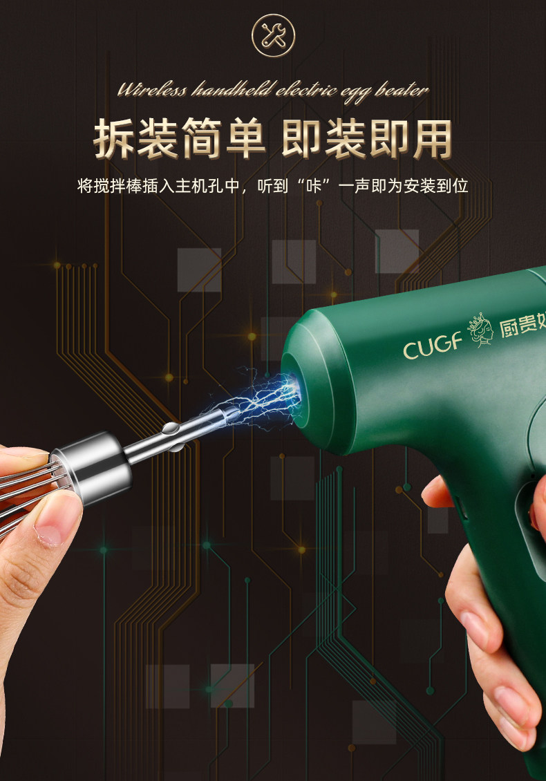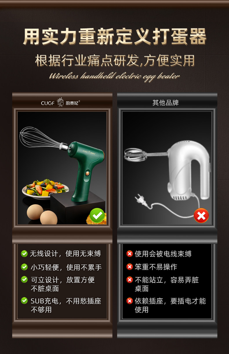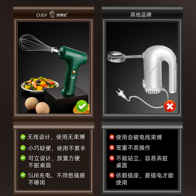 - [Кабельный стиль без грязного настольного компьютера] Беспроводной портативный электрический яичный катер