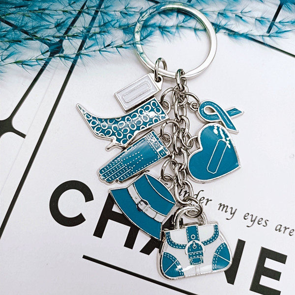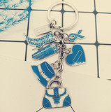 Синяя сумка, ботинки, шапка, перчатки, подвеска, брелок, ключи от машины с гравюрой