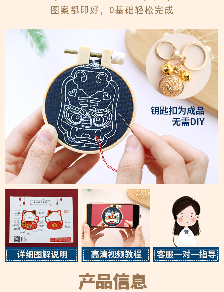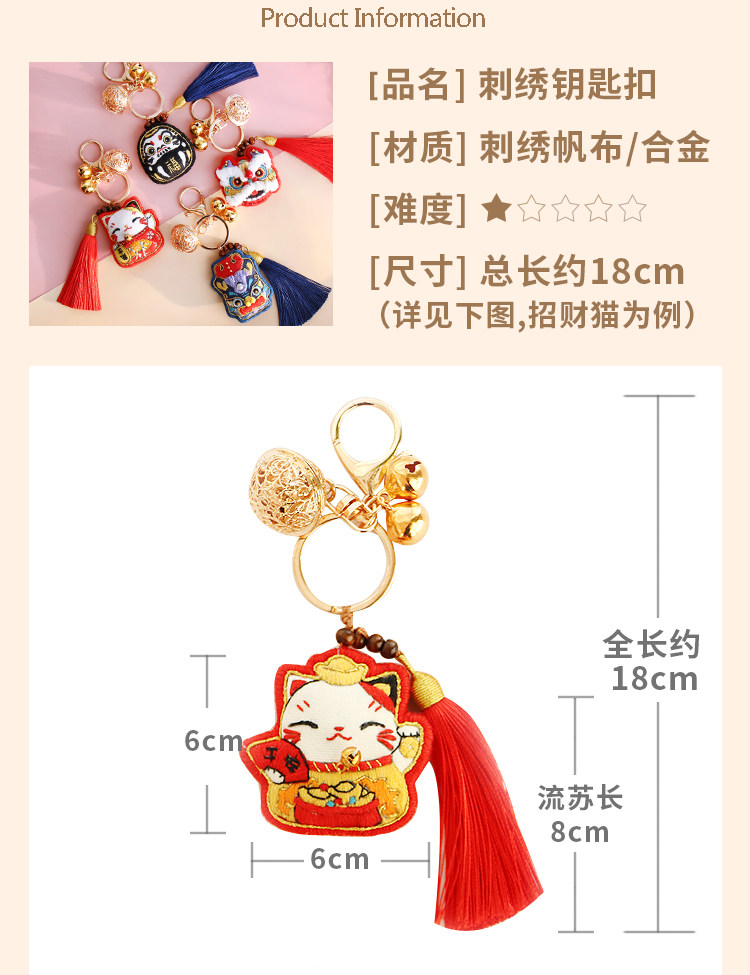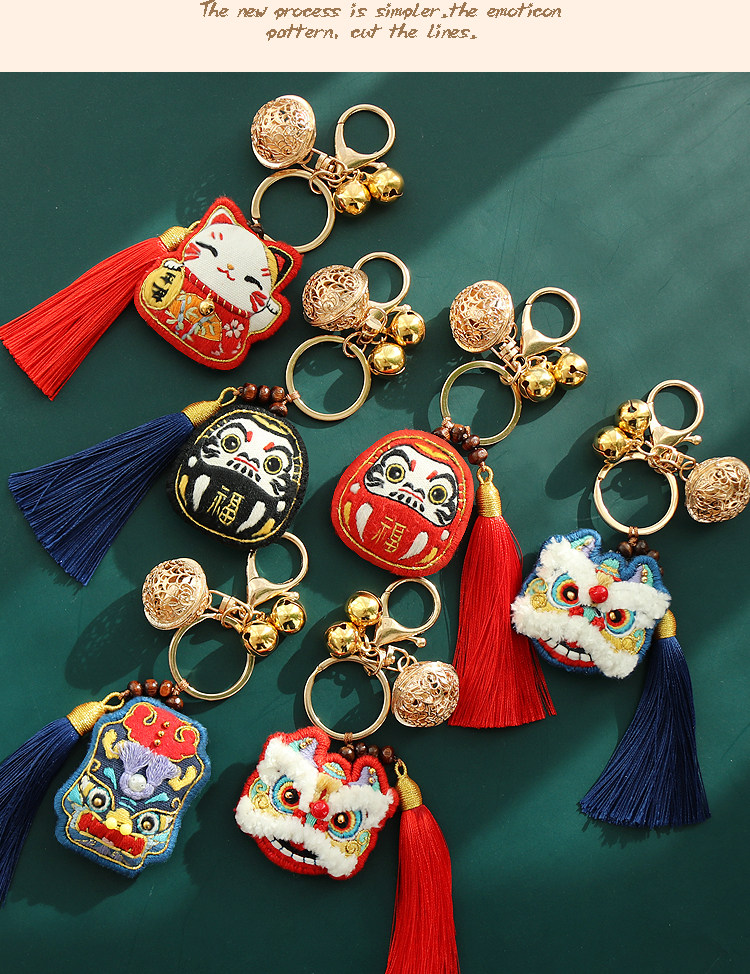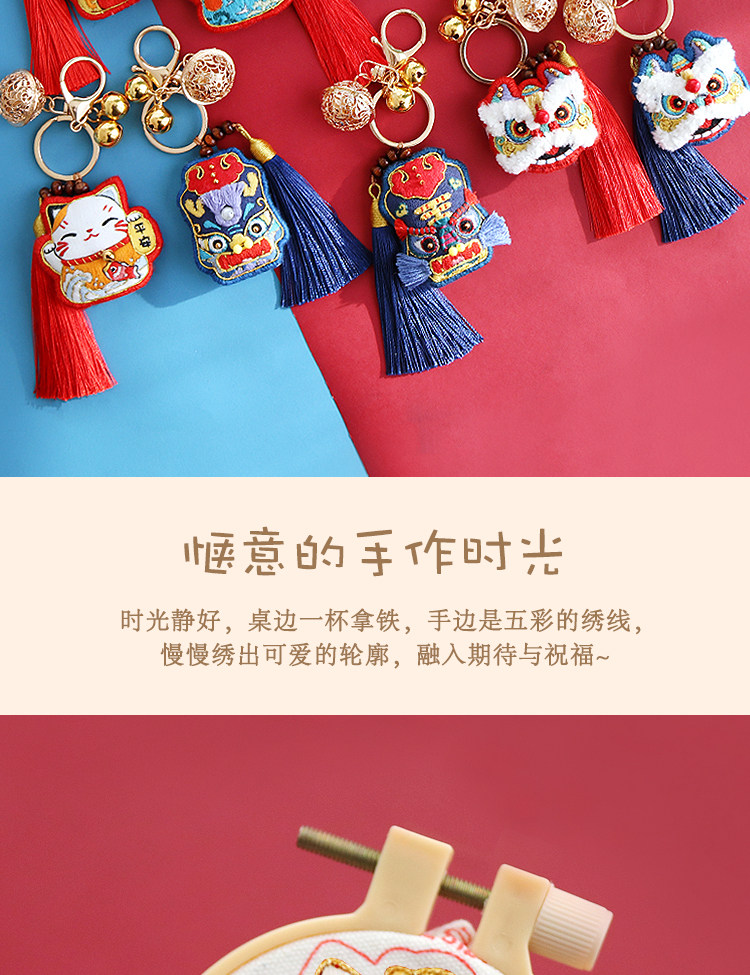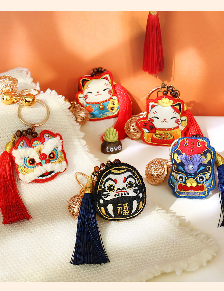 Китайский брелок, милая креативная подвеска подходит для мужчин и женщин, китайский стиль, DIY, с вышивкой, подарок на день рождения