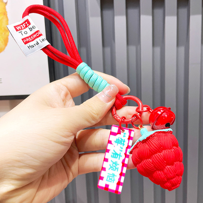 Брендовая креативная искусственная трава, клубника, милый брелок, изысканный аксессуар на рюкзак для ключей, популярно в интернете, подарок на день рождения