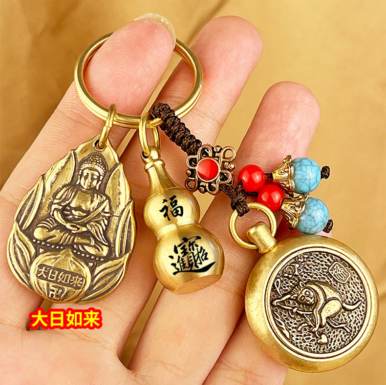Латунный брелок, ретро подвеска, китайский гороскоп, на удачу, цвета киновари