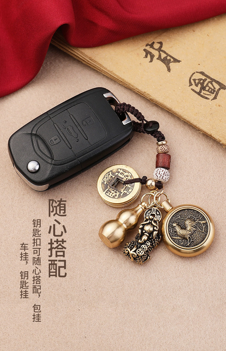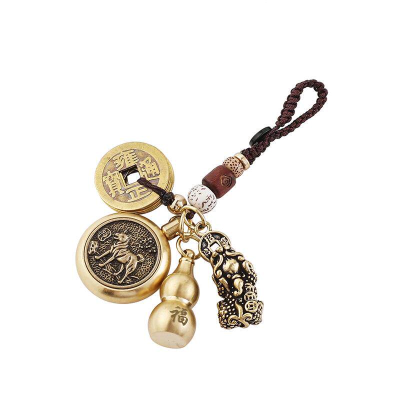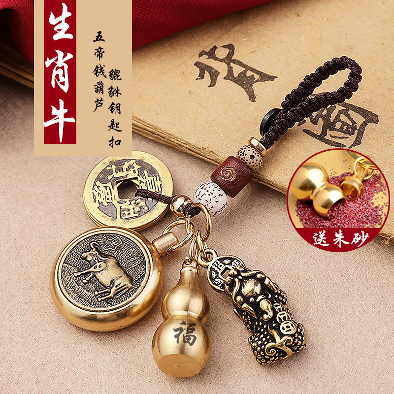 Латунный креативный брелок, подвеска, цепочка, китайский гороскоп, цвета киновари